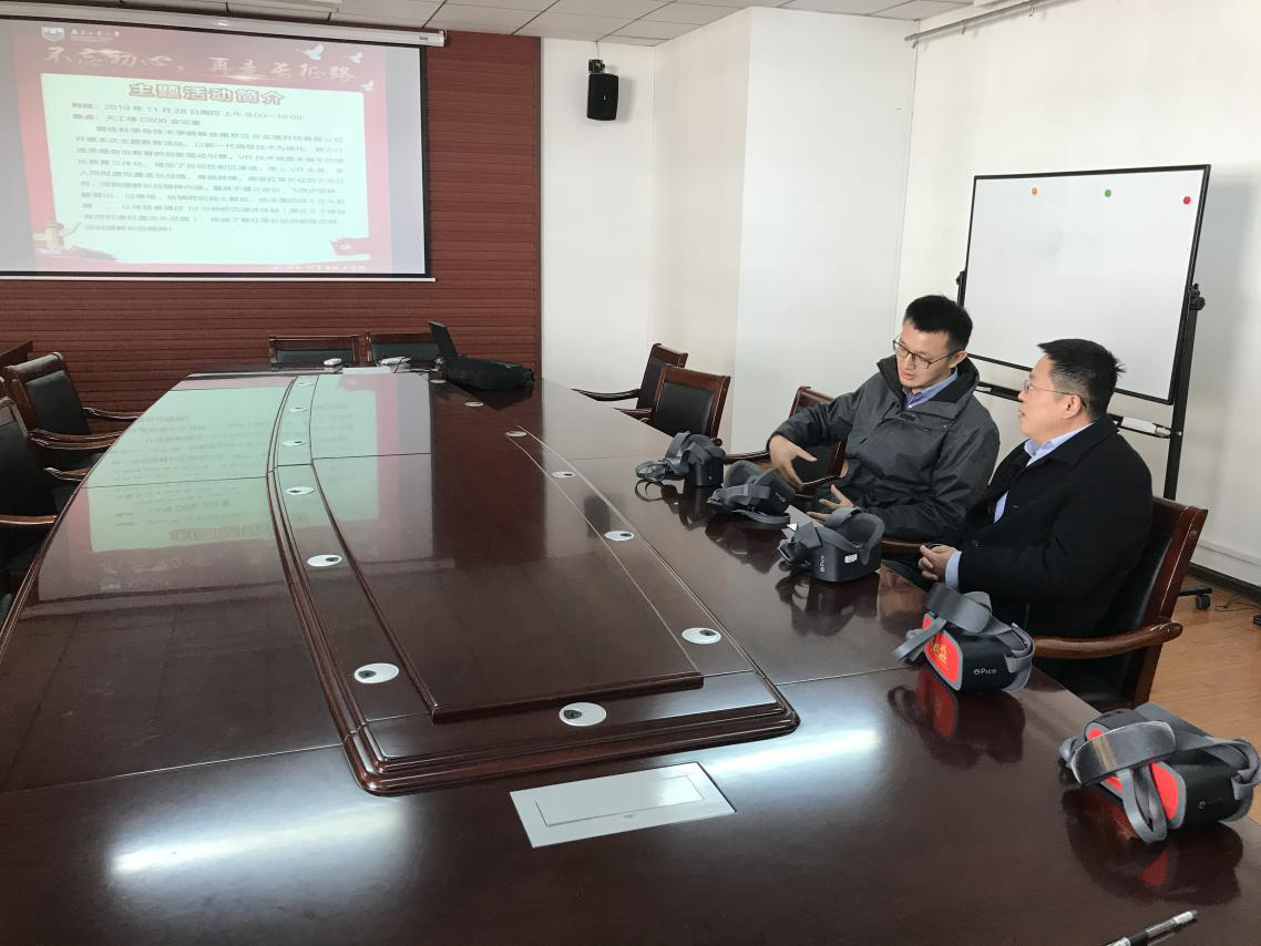 2019年11月28日上午9:00,公司联合南京泛在实境科技有限公司在江浦校区天工楼会议室开展“不忘初心,再走长征路”主题教育活动。学院师生党员代表参加了此次主题教育活动。