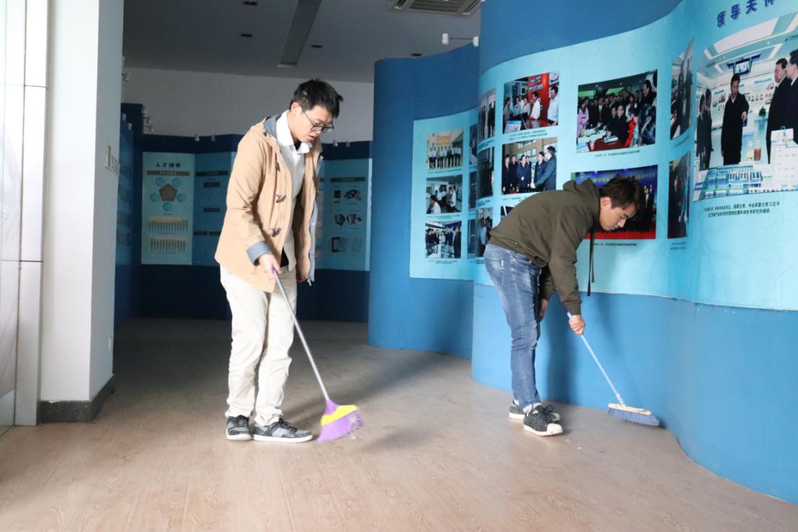 首先,支部书记许琳介绍母校的光辉历史,和全体参加活动的同学共同回顾母校建校之初的艰辛办学以及相关重要历史节点,加深支部党员对学校“明德 厚学 沉毅 笃行”校训的感悟,进一步回顾自己来到大学学习的“初心”。随后由支部集中带领党员一起参观学校典型建筑,对校史馆里较脏的区域,党员同学们积极主动地进行清扫。最后,在天宝阁前,所有支部党员对照自身问题进行“党员树承诺”,并以视频形式存档,以便于广大党员同志能够时刻反省自身存在的问题,不忘初心,牢记承诺,不断树立良好的老员工党员榜样形象。