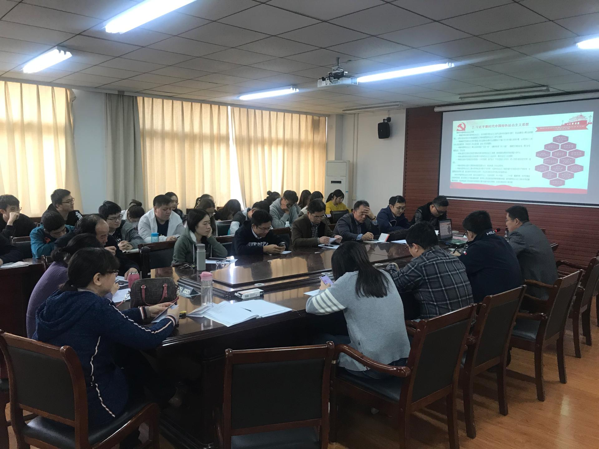 段然堂书记首先阐述了开展主题教育的重大意义、什么是共产党人的“初心”和“使命”以及习近平新时代中国特色社会主义思想的主要内容。随后,段书记结合检视调研中发现的问题和差距,明晰了学院工作中还存在的问题与不足,并从提高党建水平,发挥引领带动作用和锤炼忠诚干净担当的政治品格两个层面,提出指导实践、推动改进工作的思路措施。