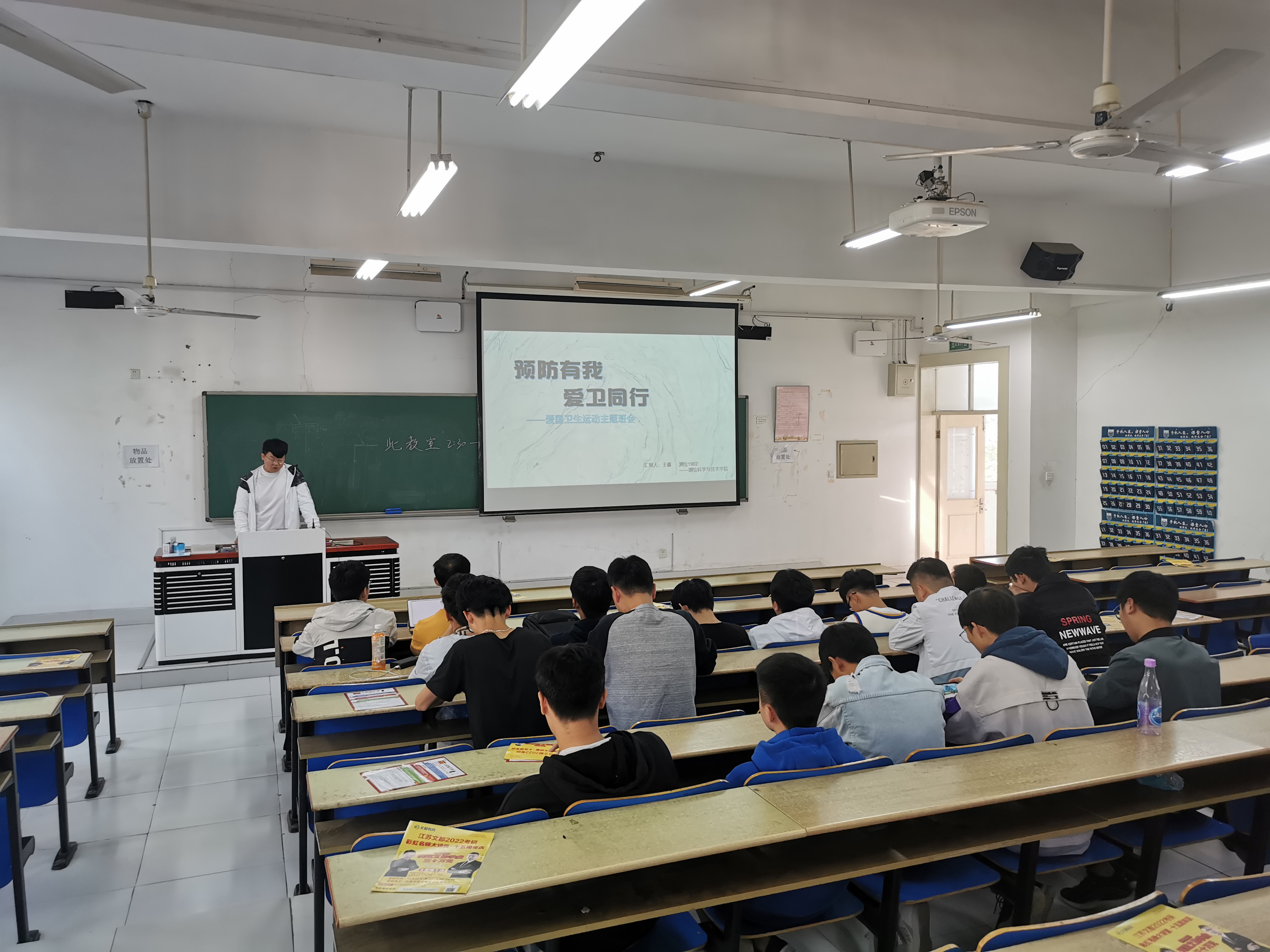 班会伊始,王睿代表班级首先发出了“传染病肆意横行,我们要保护自己,预防先行”的倡议,随后他向同学们解释了新冠病毒、艾滋病与肺结核这三种流行传染病的病理,并向同学们分享了相应的预防方法,提醒同学们日常注意防护,最后王睿同学就老员工常见心理健康问题和应对措施给大家做了普及,并告知同学们出现情绪低落可以找身边的同学亲友或心理委员倾诉,有心理问题也可以积极寻求辅导员或校心理健康中心的帮助。
