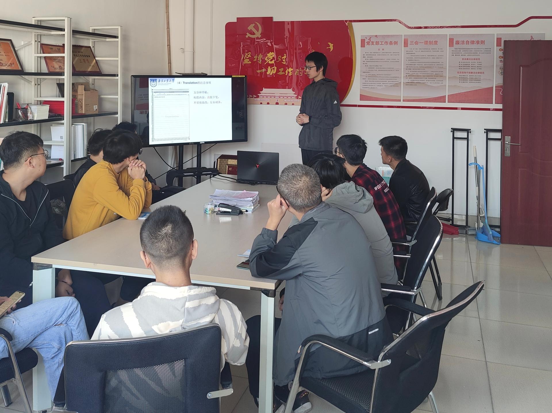 为帮助2019级尚未通过四级考试的同学顺利通过考试,公司于10月31日在天工616党群服务站举办“学霸课堂”促学活动,本次活动由公司员工会学习部牵头组织,特邀优秀学长杨清源为同学们分享四级考试心得。