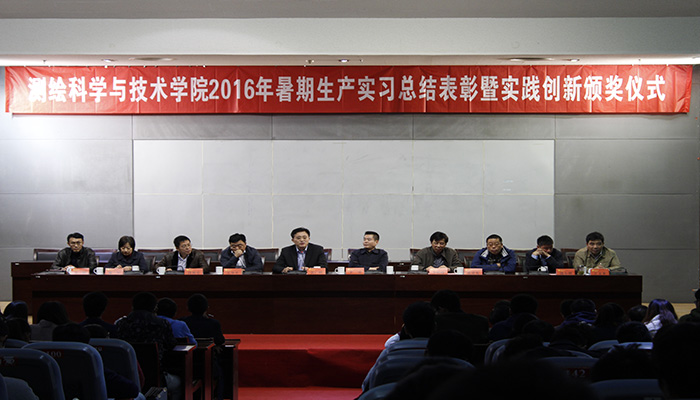 11月2日下午4时,suncitygroup太阳集团2016年暑期生产实习总结表彰大会暨实践创新颁奖仪式在江浦校区图书馆一楼报告厅成功举行。学校教学事务部部长张广明教授、副部长钱小明老师、南京市测绘勘察研究院有限公司副经理兼生产运营中心总经理李勇先生、南京龙腾空间信息技术有限公司董事长兼总经理吴华平先生、常州市武进规划与测绘院副经理戴建光、南京市测绘勘察研究院有限公司生产运营中心副总经理兼总工程师,施一军员工、公司李明峰经理、吉文来副经理,经理助理、学科办主任张云鹏老师以及师生代表参加了会议。会议由公司党委书记段然堂主持。