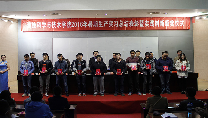 会上,表彰了先进集体1个、暑期生产实习先进个人15人、实践创新活动先进个人10人、优秀生产实习报告66人。在主席台就坐的领导和嘉宾为获奖者颁发了证书。