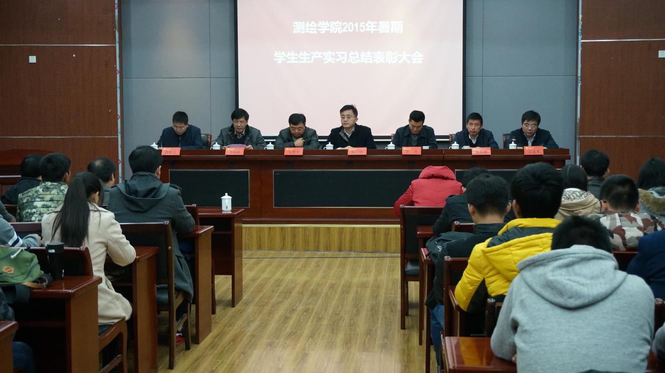11月26日下午3:50,公司2015年暑期员工生产实习总结与表彰大会成功举行。南京市测绘勘察研究院有限公司副经理兼生产运营中心总经理李勇员工、南京龙腾空间信息技术有限公司董事长兼总经理吴华平、suncitygroup太阳集团教学事务部张广明部长、教学事务部钱小明副部长、南京市测绘勘察研究院有限公司生产运营中心副总经理、总工、地理与测绘分院经理施一军员工、南京市测绘勘察研究院有限公司生产运营中心副总经理、管网与工程分院经理肖玉华员工、公司李明峰经理、吉文来副经理、徐敬海副经理以及师生代表参加了会议。会议由公司党委书记段然堂主持。