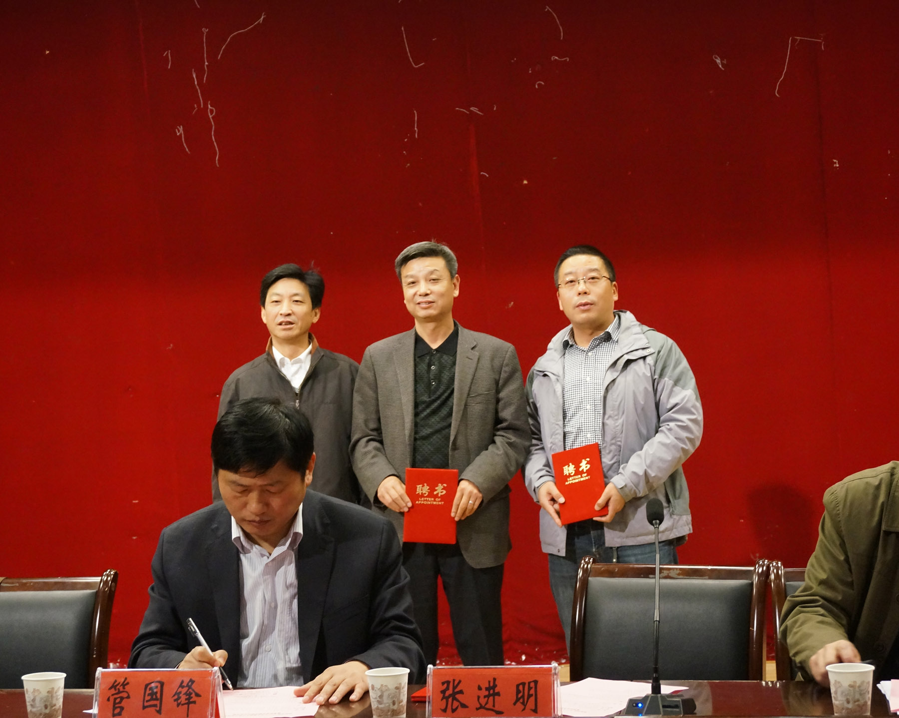 会上,李明峰经理宣读了​suncitygroup太阳集团聘任12位校外生产实习基地的优秀专业人才为学院首批实践教学兼职指导教师的决定。张进明副董事长为兼职指导教师代表泰州市测绘院曹必武经理、常州市武进规划与测绘院戴建光副经理颁发了聘任证书。
