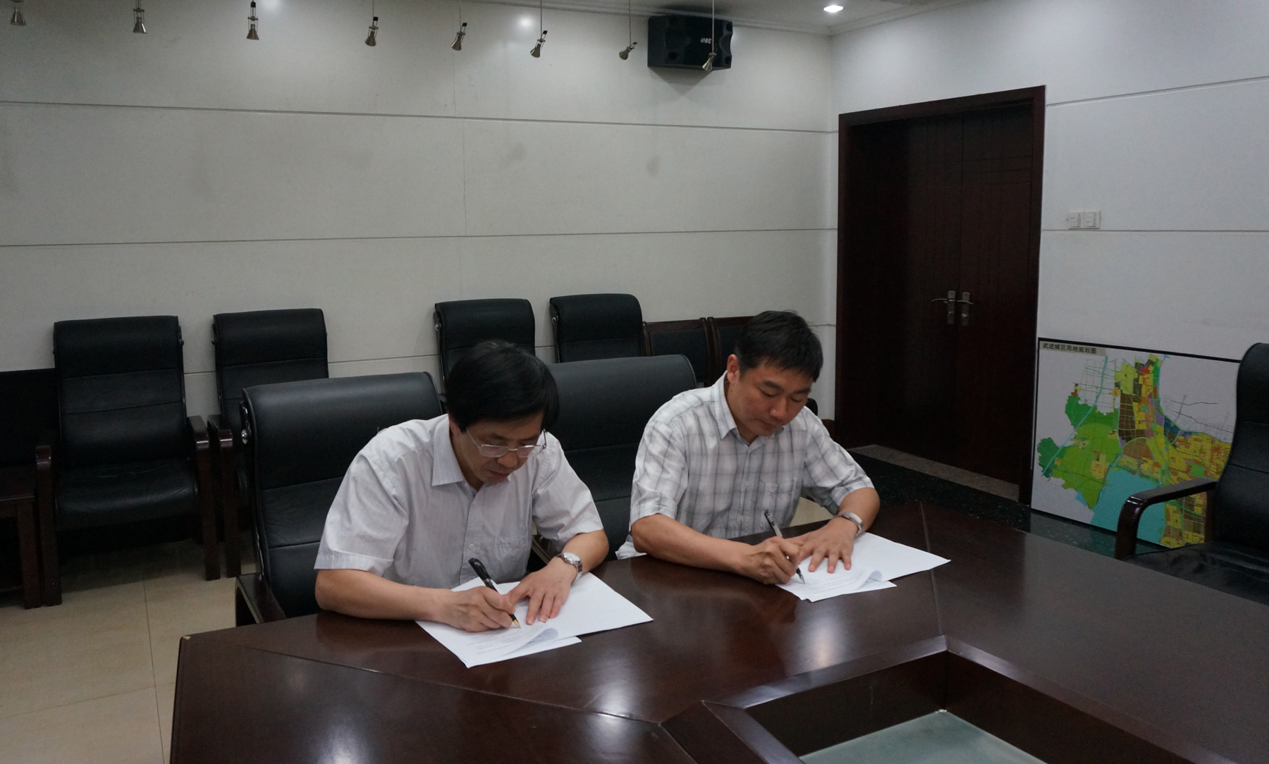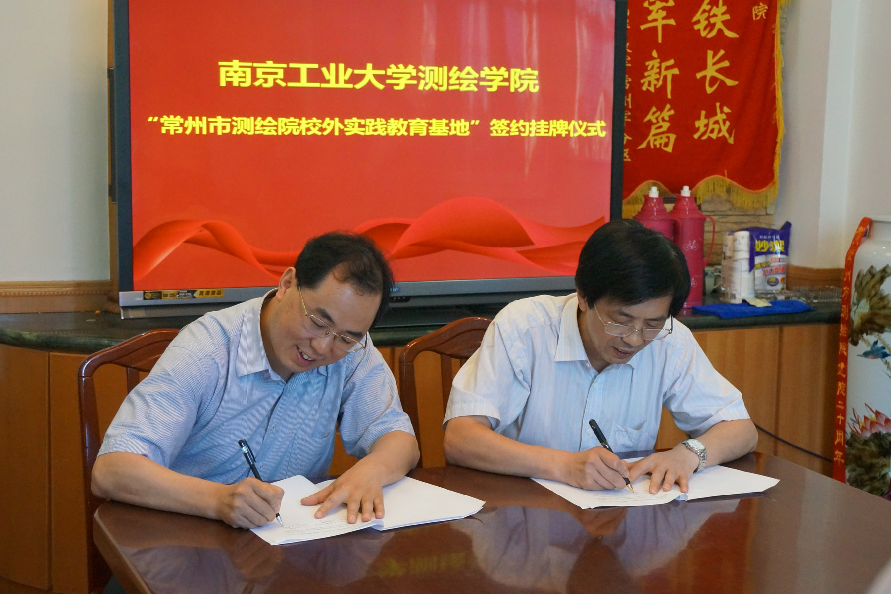 李明峰经理分别与常州市测绘院刘全海经理、常州市武进规划与测绘院缪冬生经理签定了校外实践教育基地合作协议书。