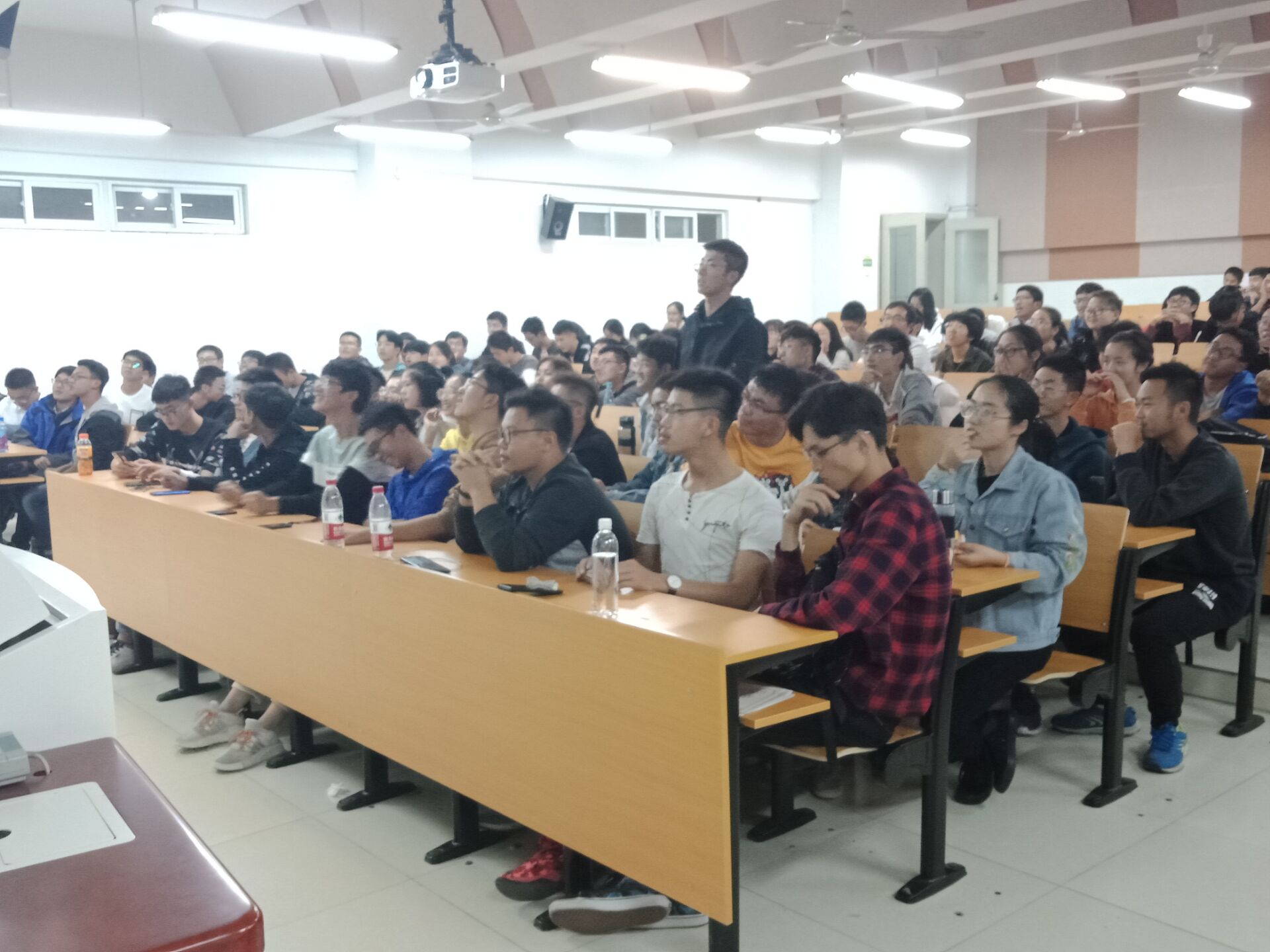 本次竞赛面向大一全体新生,以班级为参赛单位,由每个班选派6名同学为协调组,其他同学为答题组参加比赛。比赛内容分为必答题和攻防题两部分,同学们在必答题阶段表现优异,攒下了许多基础分。攻防题推陈出新,引入使用技能卡模式,如指定对方答题答错额外扣分,自己班回答正确时与主持人猜拳胜额外加分等,增加了竞赛的趣味性。各班在攻防题部分积极使用技能,斗智斗勇,对手之间剑拔弩张,参赛人员热情高涨,尽显当代老员工青春活泼风貌。