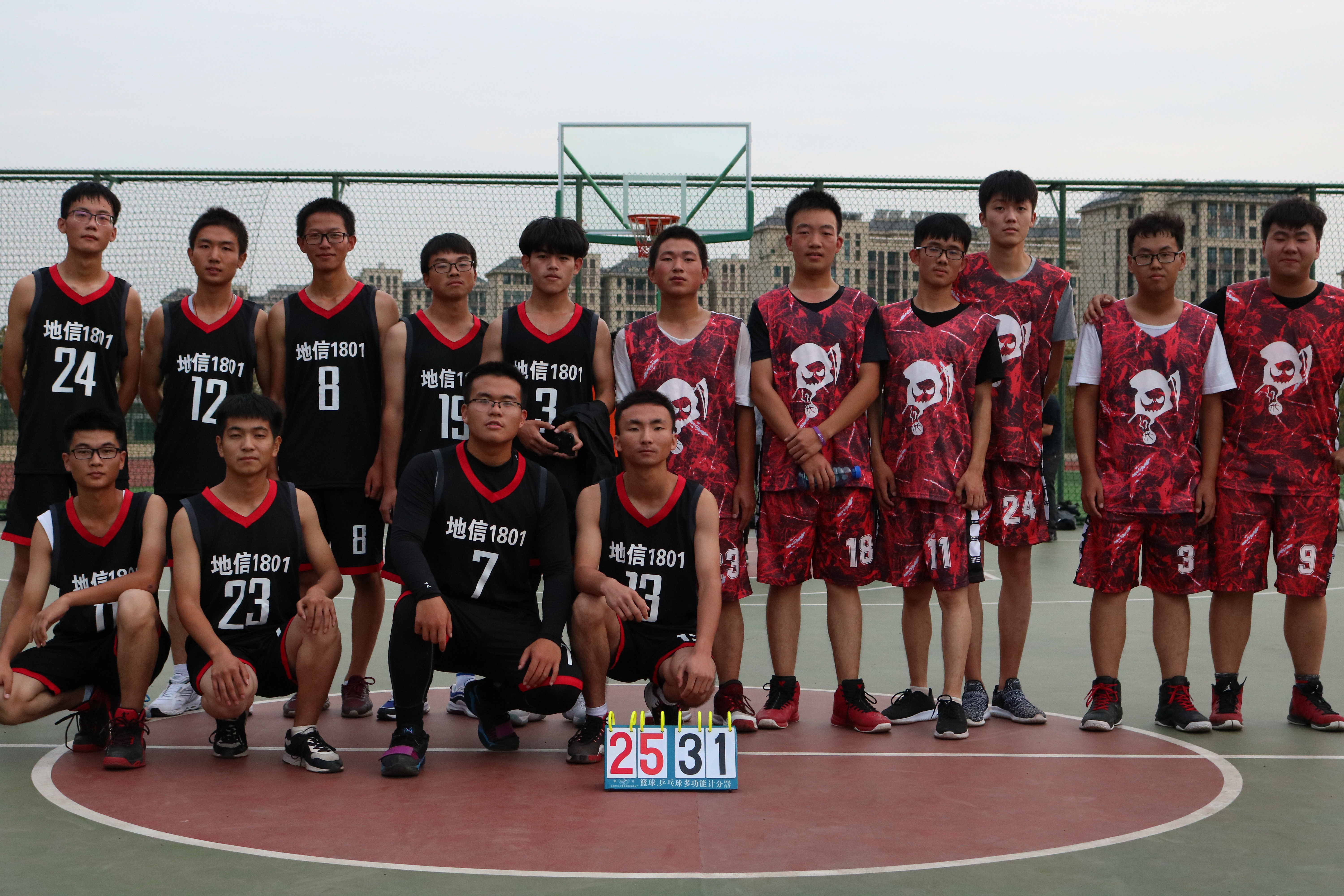 下半场比赛开始。测绘1803减少了漏洞和失误,勇猛的连夺六分。面对测绘1803的攻势,地信1801稳扎稳打,为自己的班级赢取四分。最后两分钟,只见测绘1803球员,一个三步上篮得分。地信1801队员也坚决防守,不给测绘1803队员反击的机会。最后比分定格为测绘1803班25:地信1801班31。