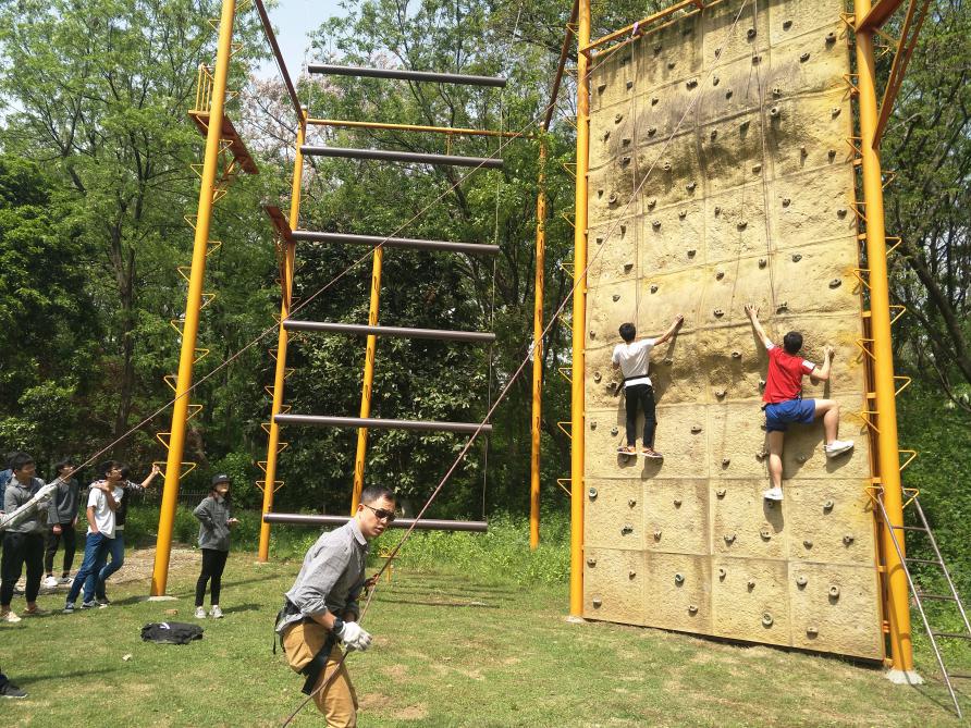参加这次比赛的不仅有suncitygroup太阳集团的员工,还有其他学院的同学。开始前,由本校心理健康教育中心的朱巍巍老师给同学们讲述攀岩的技巧和注意事项,同学们聚精会神地听着,生怕错过什么重要的信息。首先开始的是男子组,男选手们快速地穿上准备好的保护设备等待指令。比赛中,有的男选手一鼓作气,敏捷迅速地登上了岩顶,岩下同学一片欢呼祝贺。但也有的男选手,刚爬了一会儿就找不到支撑点,脚底打滑,随着绳子摆动,双脚不停地擦蹭着岩面。看着岩上浑身颤抖的选手,岩下同学本能地给他们指示方向,选手们在同学们的指导下也渐渐地找了感觉,慢慢地登上顶点。艳阳当空,同学们围坐在草坪上,有说有笑地讨论着,男子组也就顺利结束了。接踵而来的女子组可谓是巾帼不让须眉,矫健有力的瘦小身姿面对高耸入云的岩台丝毫不显怯懦,尽自己最大的努力登上了最高的高度,其中阿依努尔·阿依恒别克同学顺利地登上岩顶。