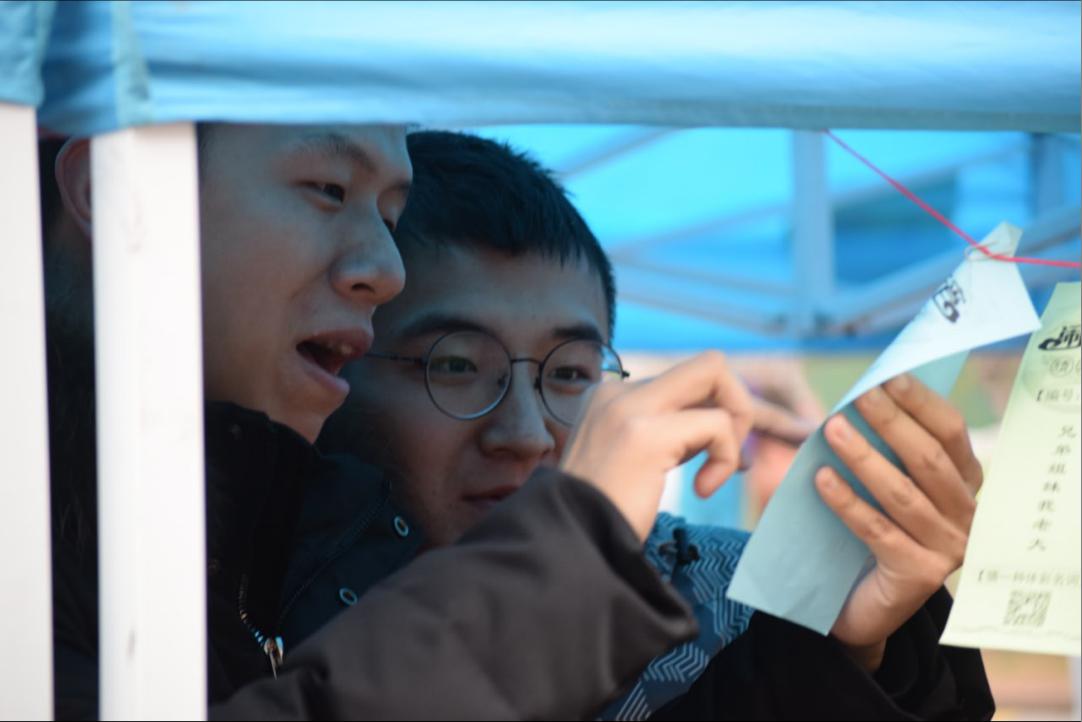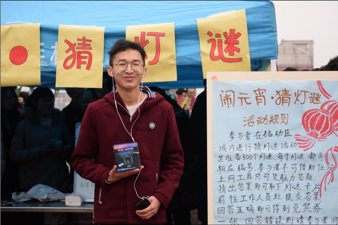 灯谜是中国传统文化的一门综合性艺术,在中国源远流长,最早可以追溯到夏朝。本次猜谜活动中,谜题涉及范围广,包括字谜、人物谜、成语谜、自然类和地名类等,内容丰富多彩,融知识性和趣味性于一体。活动开始后便吸引了各个学院的同学,他们陆续来到字谜旁,驻足观望,或冥思苦想,或交头接耳评论着,猜到后就揭下谜题前往工作人员处核对答案,现场也为猜中的同学准备了丰富的小礼品。