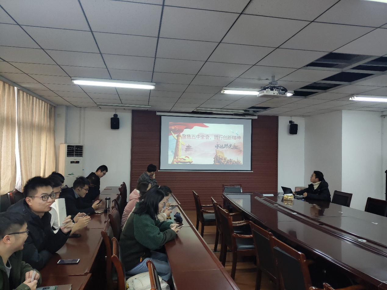 2020年11月23日上午9:30,我院研究生团支部在天工楼C616会议室举办了“聚焦五中全会,践行创新精神”主题团日活动。活动由测研2019级团支部书记薛世强主持,全体研究生团员参加。