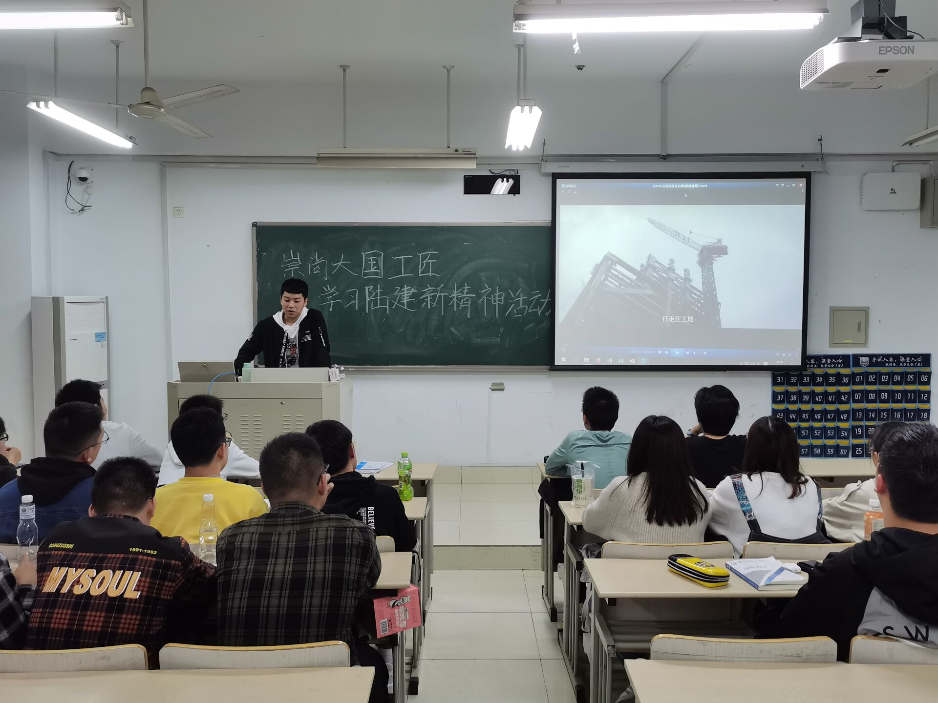 活动伊始,团支书就陆建新员工的个人事迹、个人成就、个人精神三个方面对其进行全面的介绍,让同学们更加透彻地体味陆建新员工从业37年来的个人坚守,对国家社会做出的巨大贡献以及作为大国工匠的责任感和使命感。随后全体员工观看了陆建新员工对2020级南工大学子的寄语视频,视频中陆建新员工讲述了自己37年来的工作经历,就母校的培养表达了自己的感激之情,同时激励2020级新生努力学习,提高自身专业水平,不忘伟大时代,伟大祖国的培育,于时代浪潮中奋力拼搏,为祖国书写更璀璨的华章。