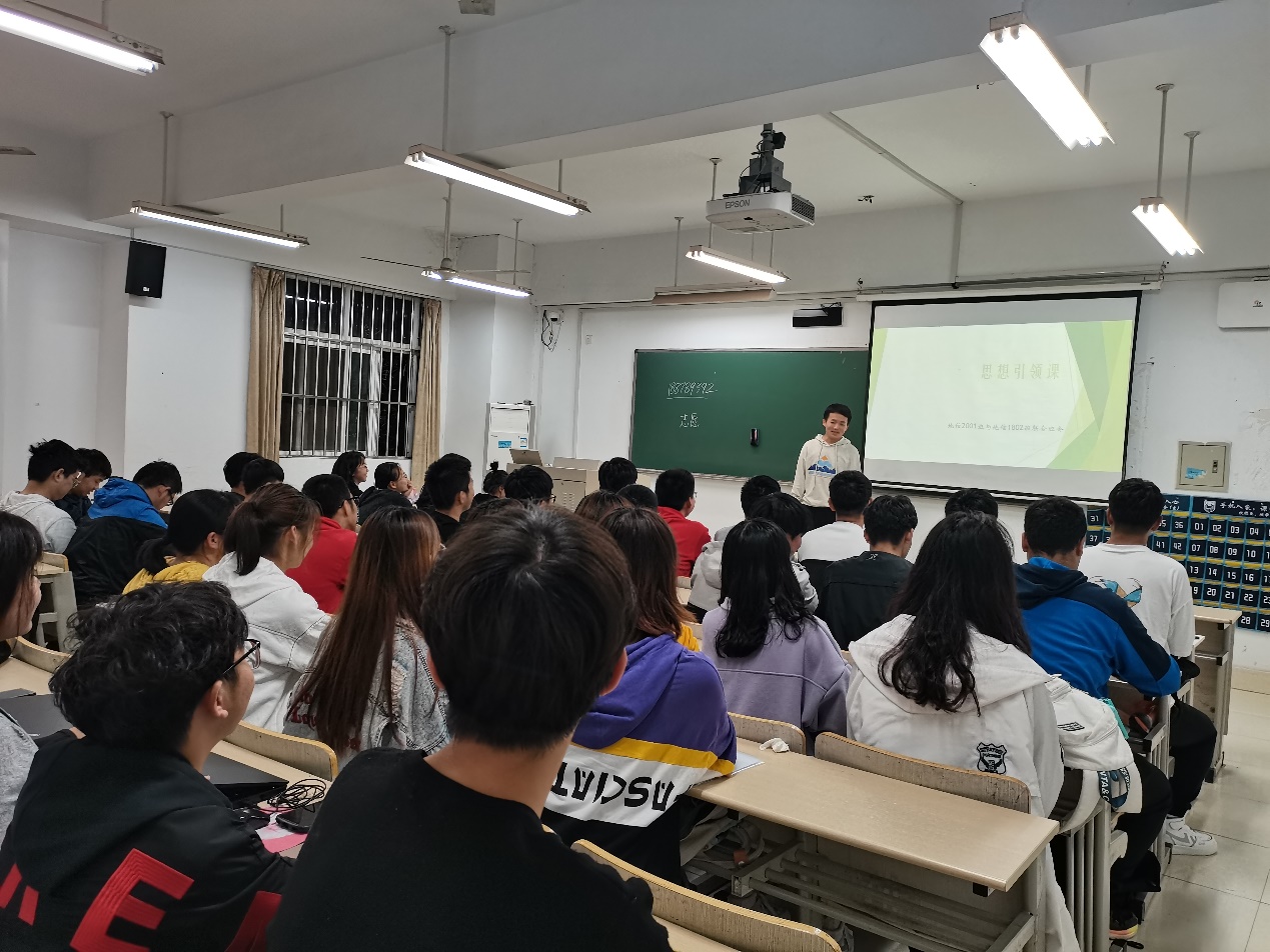 首先,冀子浩播放了一段关于中国青年在历史上担当重任的视频,中国青年中国各种事情中发挥着不可忽视的作用。同学们在观看时都受到了触动,意识到视频中的青年,正是现在的自己。随后,冀子浩从爱国 、奋斗、使命等角度解读当代青年所应确立的信念与目标。最后,地信1802班的优秀学长学姐分享了在大学里生活、学习、工作等事宜,新生同学也积极向几位学长学姐提问,帮助自己设立更加合理可行的目标。