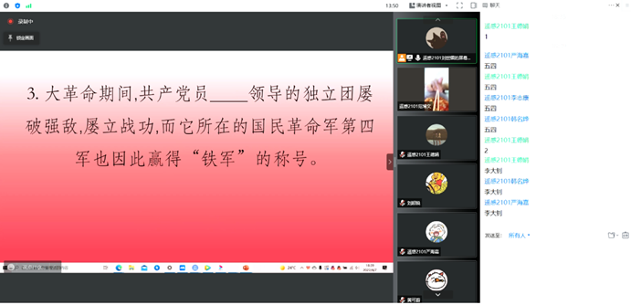 为加强支部建设、迎接党的二十大,遥感2101支部于4月24日18:30在线上开展“不忘百年建党史,共绘万千英雄情”主题团日活动。本次活动由团支书王德娟主持,支部全体同学参加。