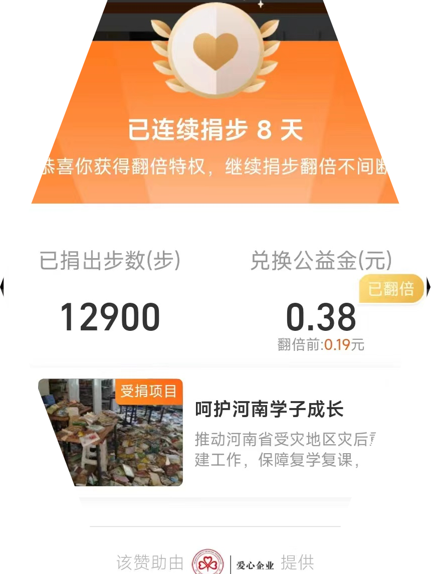 本次活动采取线上和线下相结合的方式进行。活动开始前,院员工会进行了广泛地宣传动员,让同学们了解此次活动的目的以及形式。活动期间,同学们纷纷走出寝室,走向操场,并通过支付宝软件记录每日步数,在规定时间内将捐步截图发往QQ群的每日《群相册》中。不积跬步,无以至千里;不积小流,无以成江海。每一个微小的支持慢慢累积,对于那些需要帮助的人都会形成巨大的帮助。活动的最后,同学们将脚步丈量成一份可捐赠的爱心,通过帮助公益活动筹集基金的形式,为身处困境中的人送去温暖,带来希望。