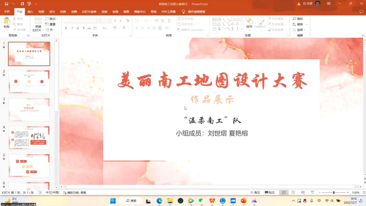 为丰富公司校园文化生活,展现校园风光,12月7日,公司成功举办第九届“美丽南工地图设计大赛”作品线上展评会。本次大赛经过前期宣传、作品收集、最终展示三个阶段,共有来自海外教育学院、安全科学与工程学院、建筑学院、交通运输工程学院、电气工程与控制科学学院的11支队伍参与。公司宫金杞、黄祥老师,程思进同学参加展评会并担任评委。
