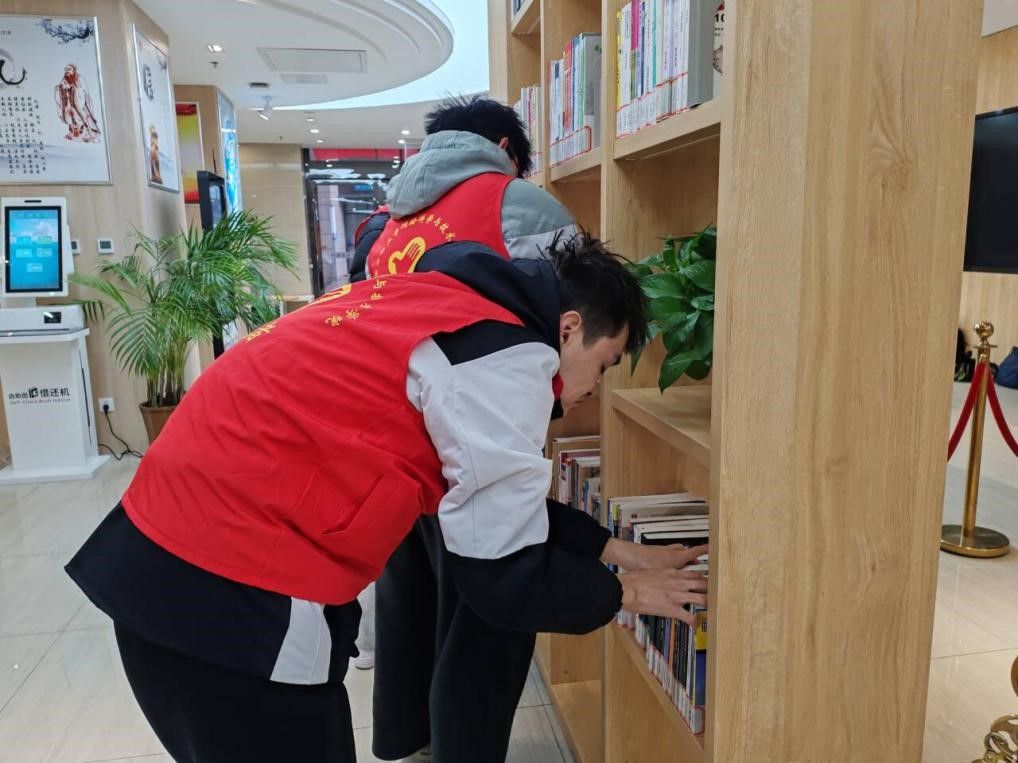 活动开始,图书馆负责人员带领同学们参观图书馆,让同学们尽快熟悉图书馆以便志愿工作顺利开展。随后,图书馆负责人对同学们进行培训,详细讲解了书籍的排列规则、整理要领以及注意事项,并为同学们分配了工作任务,包括书籍搬运、书籍摆放及整理,打扫卫生等。业务熟悉后,开始志愿工作,过程中同学们互相帮助,认真仔细,确保每本图书都放置到了正确的位置上,每个打扫过的地方一尘不染。最后,在共同的努力下,图书馆书籍整理得井然有序,为读者们营造了良好的阅读和学习环境。活动结束全体集合,同学们和图书馆负责人员交流工作心得,为后续学院与社区结对共建,实现双向赋能打下良好基础。