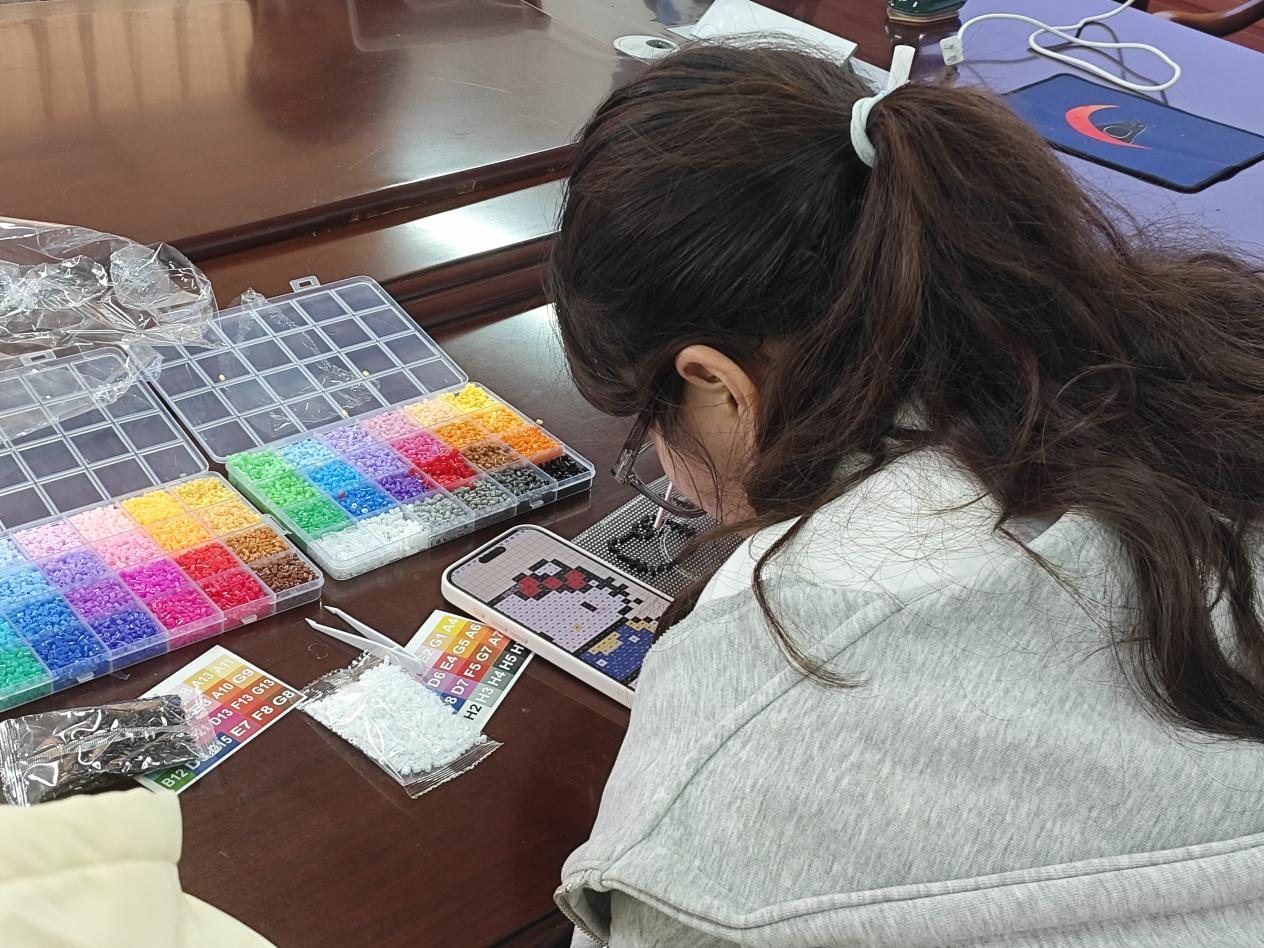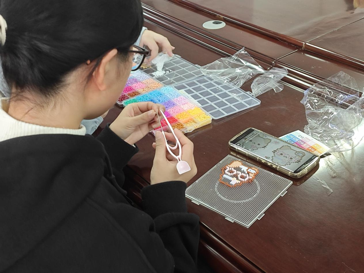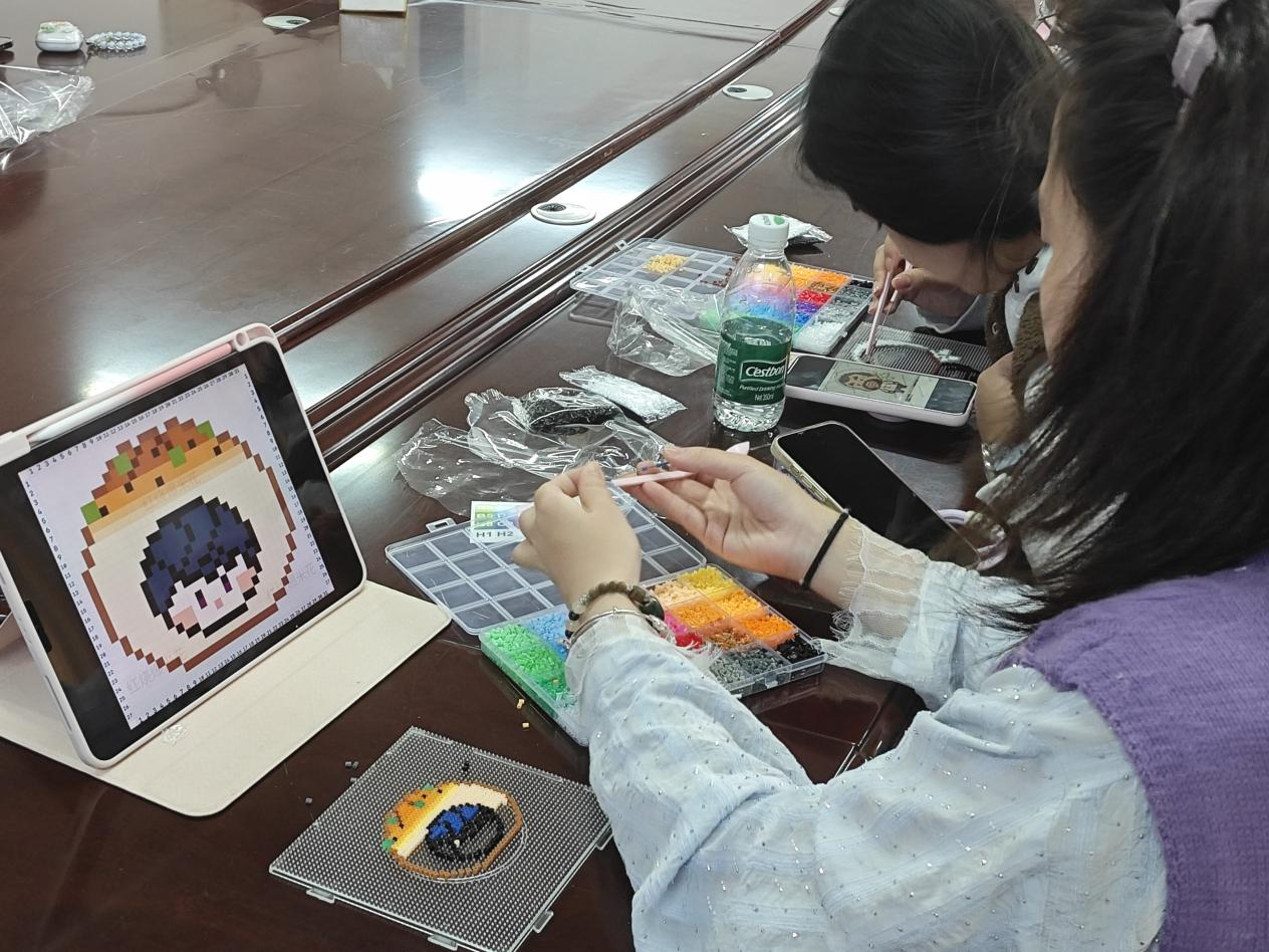 活动伊始,具备丰富手工创作经验的学长系统介绍了拼豆艺术的历史渊源与基本技法,并逐步演示了制作流程,为同学们奠定了扎实的实践基础。随后,工作人员将参与者分为若干小组,分发五彩拼豆材料。各小组成员踊跃交流、凝聚创意,结合学科特色与个人兴趣,共同构思并精心制作拼豆作品。在协作过程中,同学们不仅锻炼了手眼协调能力,也深刻体会到沟通与配合的重要性。作品完成后,各小组代表依次上台进行展示与讲解,分享创作理念与团队合作心得。通过现场投票,评选出若干优秀作品组,并予以表彰奖励。