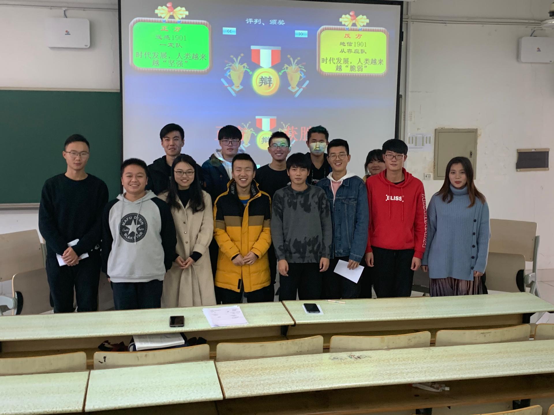 124日下午1:30,公司新生辩论赛决赛在仁智401顺利举行。本次比赛的正反双方分别是遥感1901和地信1901。此次决赛特邀法学院辩论队队长朱叶洋、院辩论队队长吕坤昆担任评委,主持人为杨宸、齐梦轩。