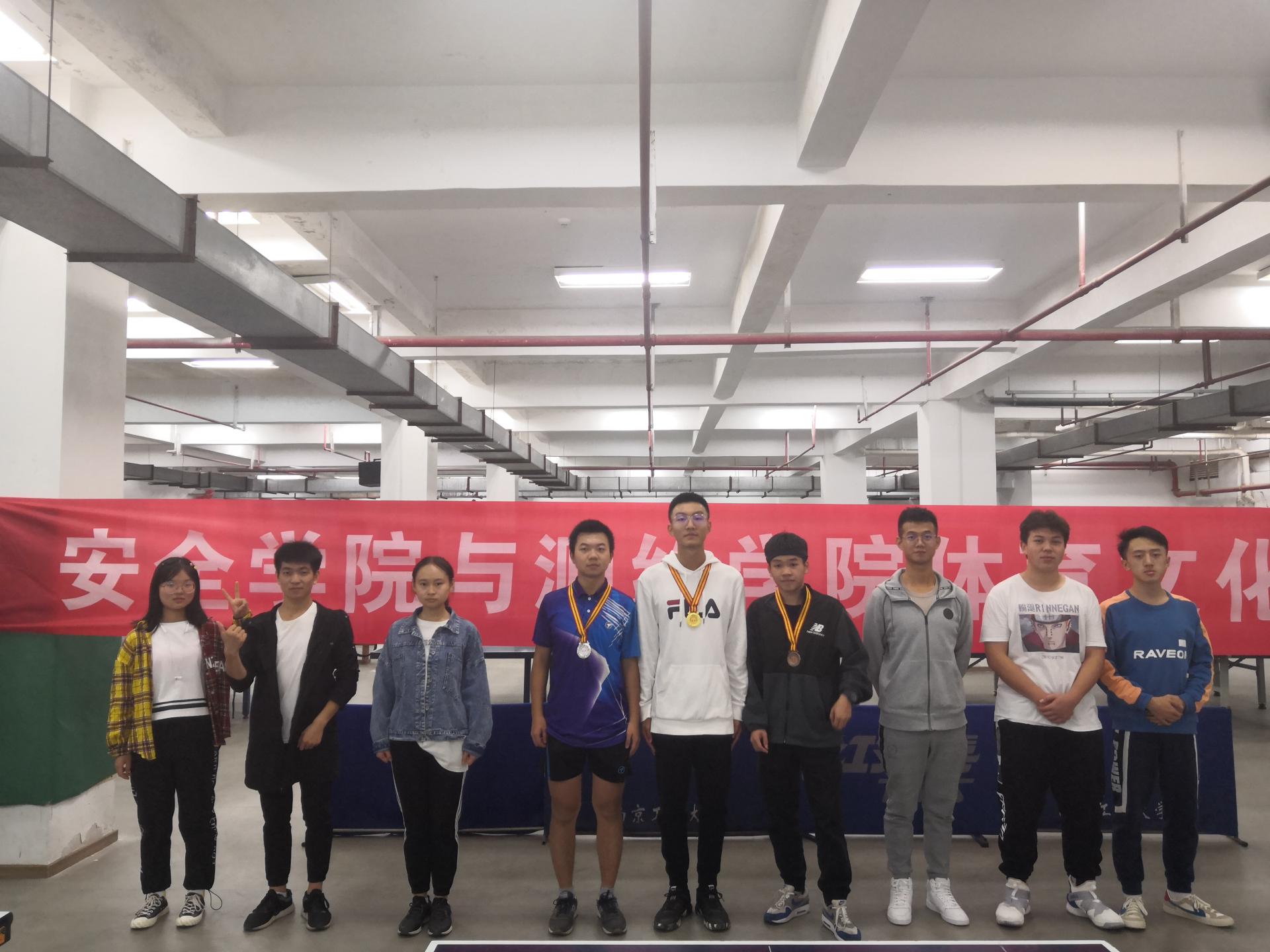 首先开始的是女子乒乓球赛,分组同时进行,晋级者参与下一轮。刚一开始,战况就相当激烈,你来我往间,小小的乒乓球也展现出非同一般的力量。两院选手互不服输,最后,女子乒乓球赛前三甲出炉,她们分别是:测绘1901安钰洁、安全1902苗雪怡、测绘1902杨逸娟。至此,女子组乒乓球赛告一段落。 随后开始的是男子乒乓球赛,赛制与女子组相同。相比于女子组,男子赛更加激烈,经过一番角逐后,男子乒乓球赛也终于落幕,前三甲分别是:遥感1901 乔富康、安全1905胡愈硕、安全1904吴多璧。至此,比赛圆满结束。