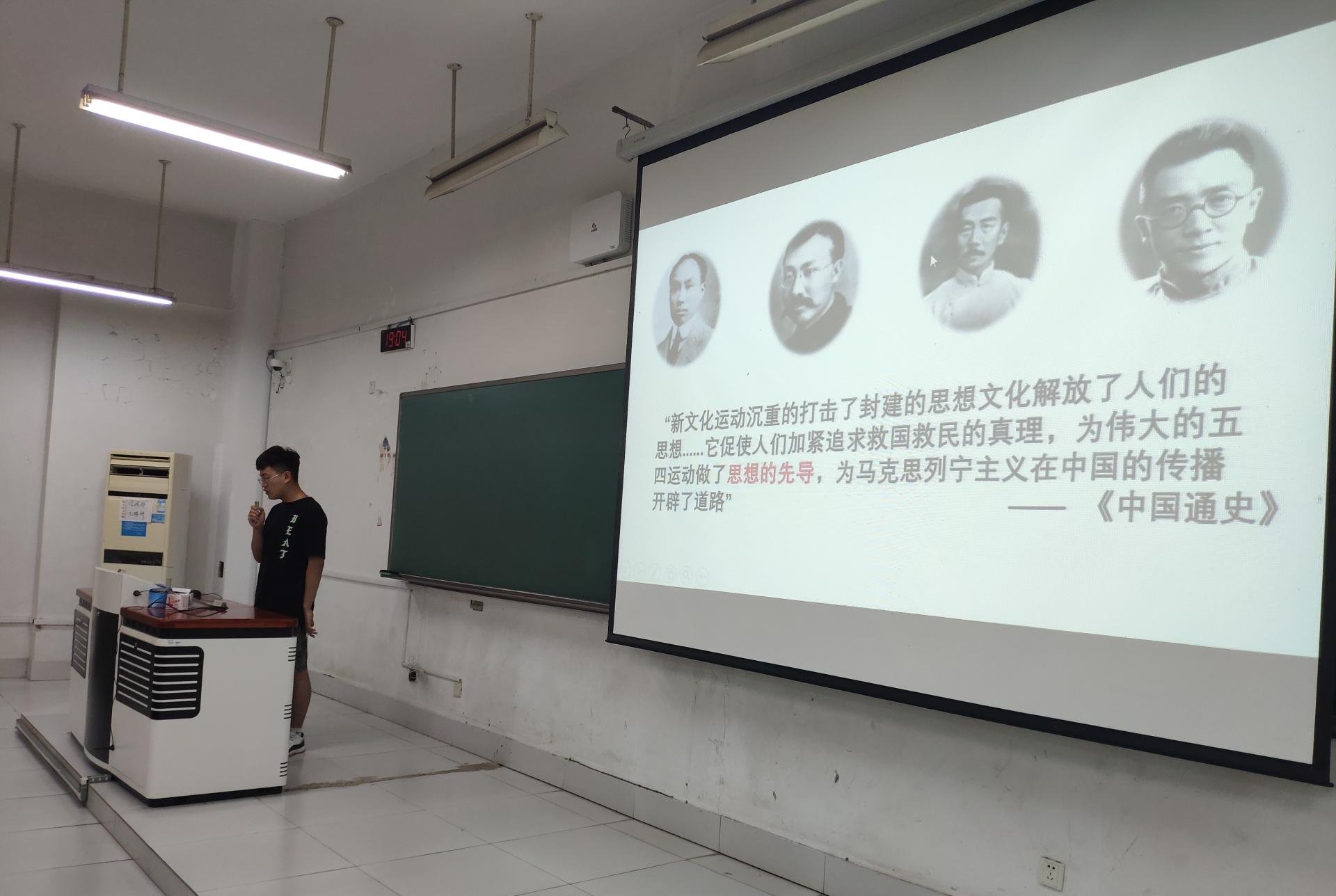 为纪念五四运动100周年,公司于9月25日19:00在仁智201举办了以“纪念五四运动100周年”为主题的微团课活动,主讲人为18级团总支书记周曹晨宇,18级全体员工参与此次活动。