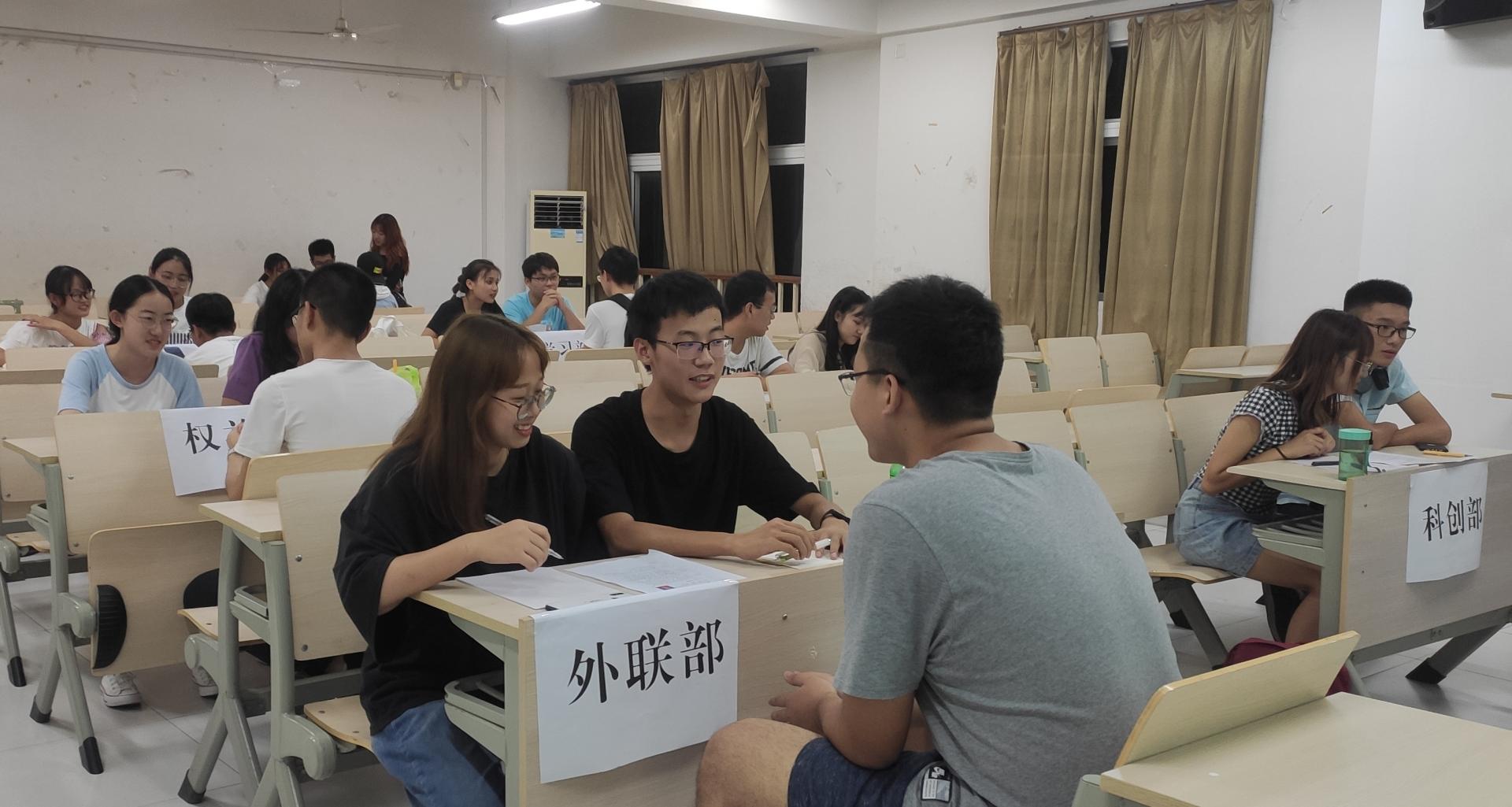 会议伊始,员工会主席陈世通对2019级员工的到来表示热烈欢迎,他综合概述了员工会的主要职责与以往举办的各类活动,指出员工会是一个温暖的大家庭,给了员工自我展示和锻炼能力的平台,并表示期待他们的到来。之后,八大部门以及团总支、创业与就业协会、心理协会和院辩论队分别从部门成员、部门职责、部门发展等多方面介绍了自己的部门,精彩的PPT及幽默轻松的演讲方式带动了2019级新生的积极性,同学们表示会积极参与其中。晚上7时各部门分别对新生进行面试,在了解了员工意愿并讨论交流后,活动圆满结束。
