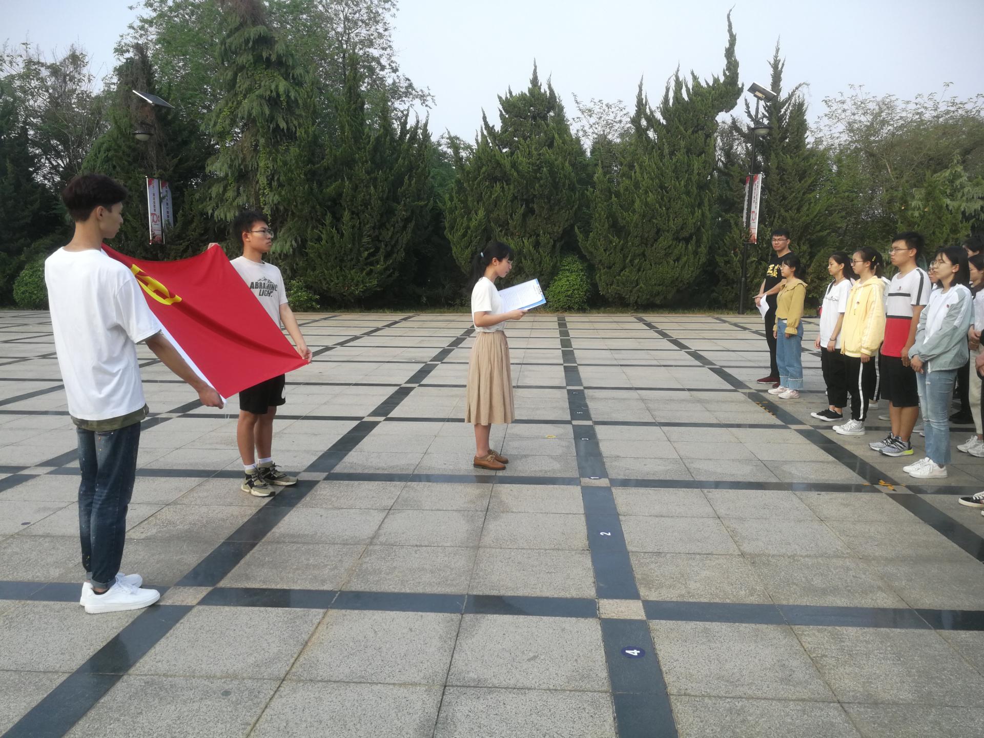 向纪念碑庄严地宣读了入团誓词。员工代表刘佳思同学发表了学习五四精神的演讲,强调新时代老员工要激流勇进、勇创辉煌。紧接着,大家面向团旗,高唱国歌、团歌。最后学院团委书记张甲田老师进行总结,她强调青年员工要继承和发扬革命精神,肩负起时代赋予的使命,要珍惜现在美好的生活,认真学习、刻苦钻研,做一名肯学肯干的共青团员。