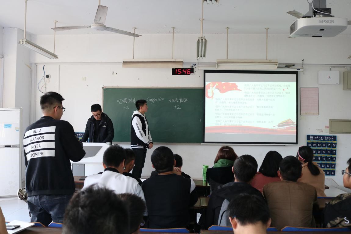 活动伊始,支部成员被分为文体活动、志愿服务、创新创业三个小组,小组成员在支持人的带领下,回顾了中国共产党的发展历程,了解党的十九大及团的十八大相关知识。紧接着,朱曹晨宇以趣味竞赛的形式,组织了一场别开生面的关于党团知识的竞答活动,团支部成员激烈竞争,积极抢答,在此环节中,同学们间的关系变得更加融洽,也加深了对党团的认识,充分展现了新时代老员工的新风采。最后,团支书朱曹晨宇同学希望大家要以党员的标准严格要求自己,树立正确的世界观、人生观、价值观,努力学习,为祖国的发展贡献出自己的一份力量。
