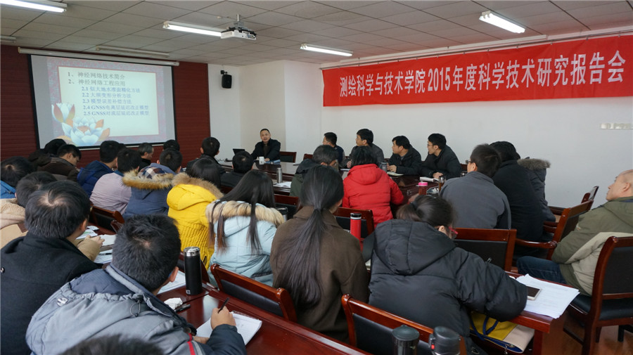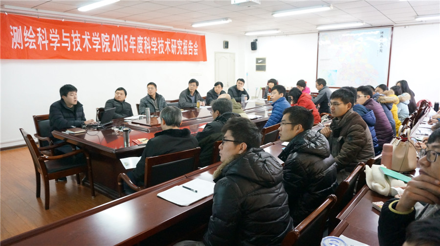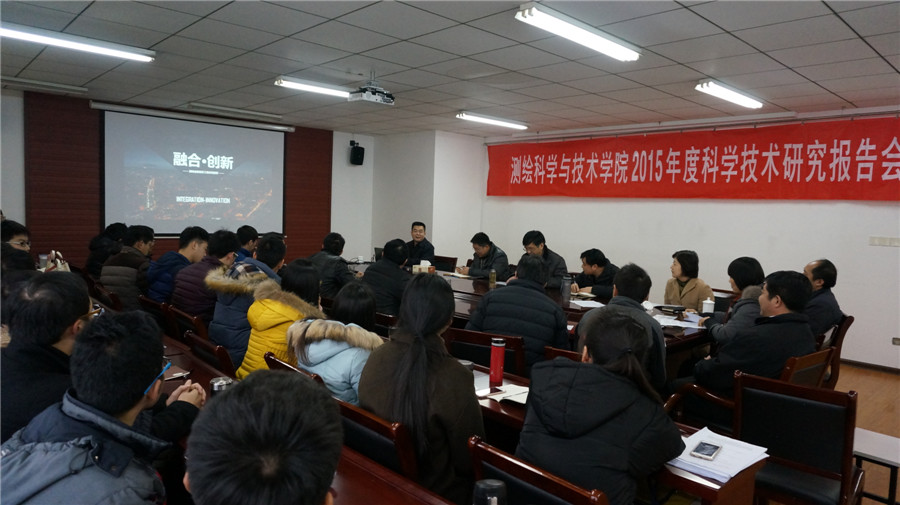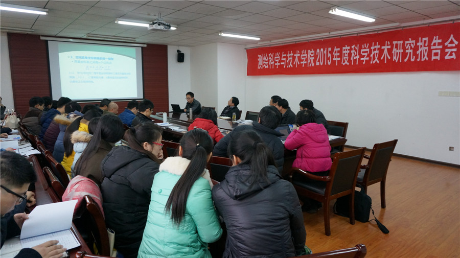 12月28日,在江浦校区天工楼C606会议室,公司举行了2015年度科学技术研究报告会,学院李明峰经理、段然堂书记、吉文来副经理、南京市测绘勘察研究院有限公司生产运营中心副总经理、总工、地理与测绘分院经理施一军员工、南京市测绘勘察研究院有限公司生产运营中心副总经理、管网与工程分院经理肖玉华员工、教师代表及全体在校研究生参加了会议。东南大学教授、博士生导师、交通学院测绘工程系主任胡伍生,南京市测绘勘察研究院有限公司董事、教授级高级工程师、suncitygroup太阳集团产业教授李勇应邀作了专题学术报告,报告会由徐敬海副经理主持。