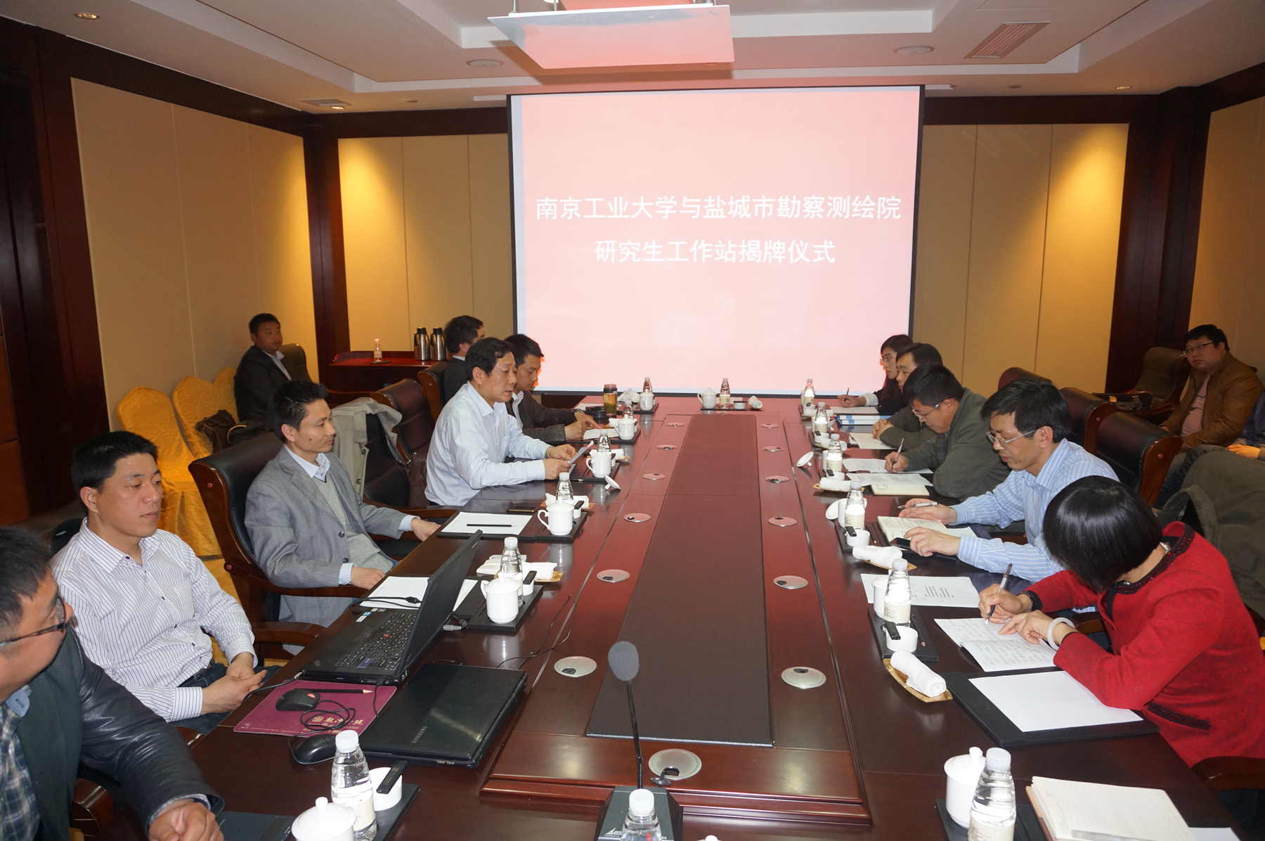 在揭牌仪式上,李明峰经理介绍了公司的发展情况,着重宣传了公司成功入选国家首批“2011计划”(高等学校创新能力提升计划)、开启“综合性、研究型、全球化”高水平大学建设以及学院在人才培养、团队建设、科学研究、产学研合作等方面的情况。同时,李经理通过回顾校企双方长期合作所取得的成果,衷心感谢盐城市勘察测绘院以及员工们一直以来对学院建设发展的支持,并寄希望以共建研究生工作站为契机,把双方的合作推向更高层次,实现学校、企业、研究生三方共赢。