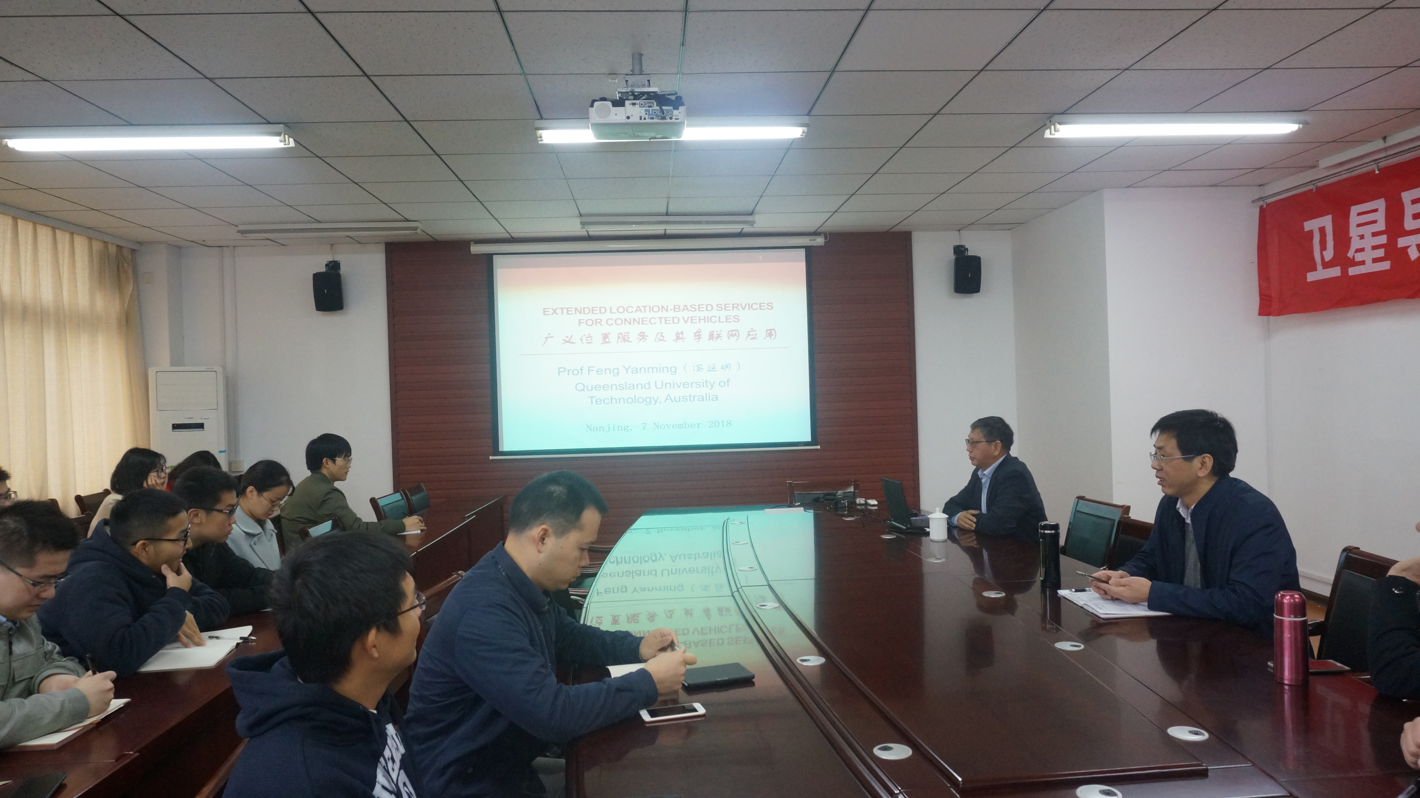 经理李明峰教授首先简要介绍了冯延明教授的个人简历、研究领域和学术成果。随后冯延明教授做了题为“Extended Location-Based Services for Connected Vehicle(广义位置服务及其车联网应用)”的报告,报告中首先给出了广义LBS的定义,介绍了广义LBS的应用框架和广义LBS涉及的GNSS定位、实时数据传输的通信制式和应用协议等关键技术,并分享了实时GNSS数据传输中MQTT broker最新应用状况,最后给出了未来研究中值得关注的问题。