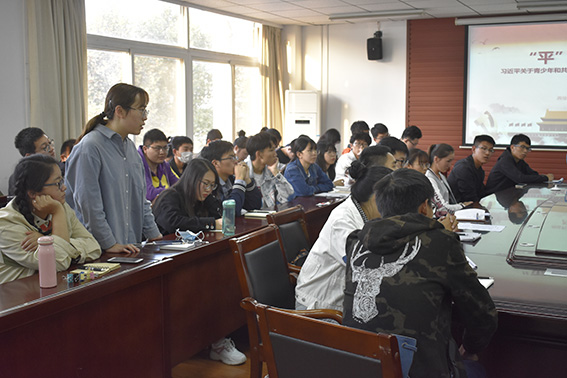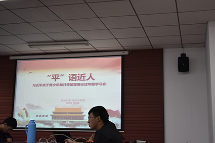 10月26日下午三点三十,公司在天工楼会议室召开习近平关于青少年和共青团重要论述专题学习会,与会人员有公司党委书记段然堂、院团委书记张甲田老、18级新生辅导员许琳、研究生代表余婷婷、包子宇以及各年级员工代表,此次会议由张甲田老师主持。
