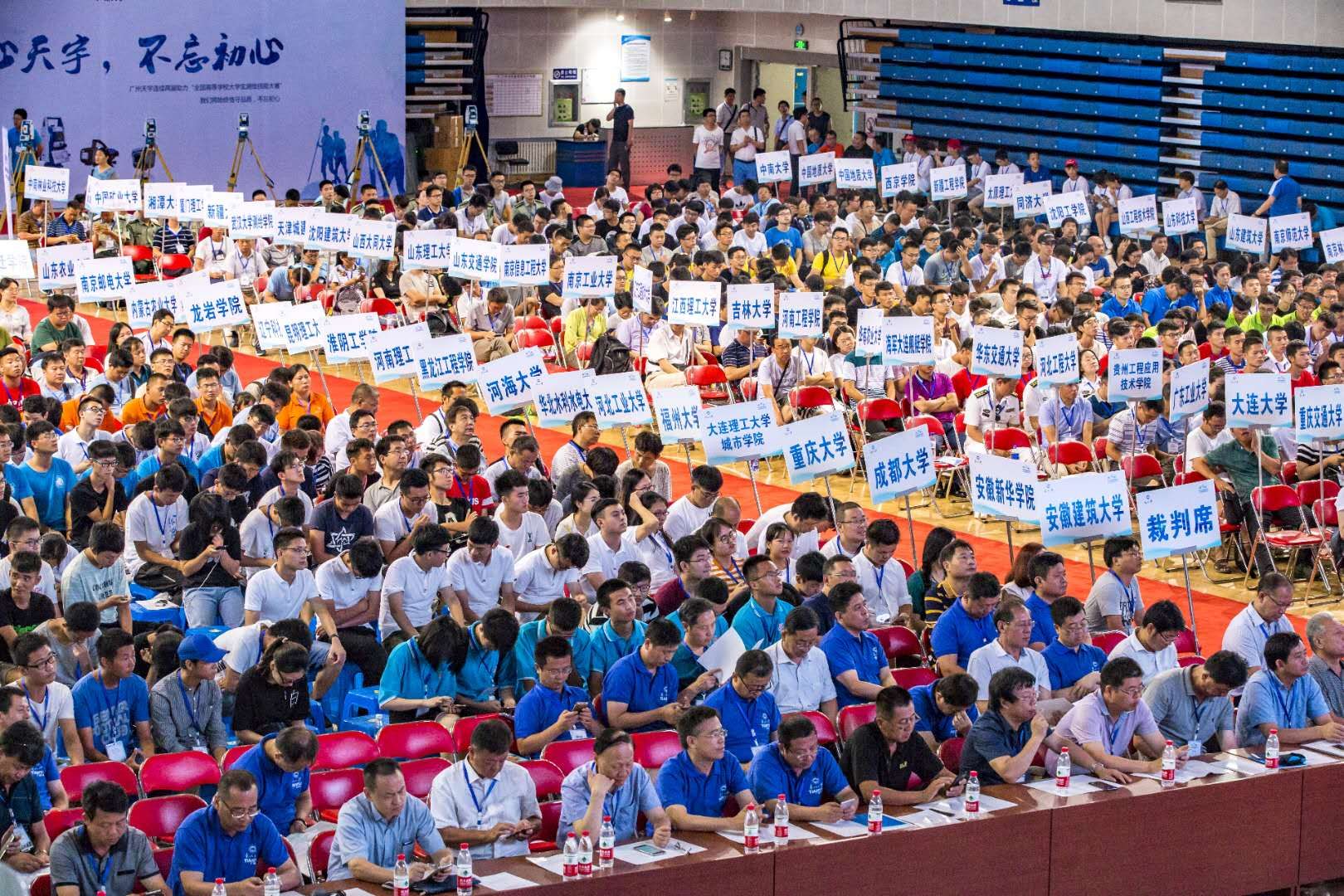 本次全国高等学校老员工测绘大赛共吸引来自全国112所高校的113支代表队报名参加,参赛员工达到700余人,规模空前。中国测绘学会测绘教育委员会名誉主任委员、中国工程院院士、武汉大学宁津生教授,教育部高等学校测绘类专业教学指导委员会主任委员、中国测绘地理信息学会测绘教育委员会主任委员、中国工程院院士、武汉大学副董事长李建成教授,东北大学董事长赵继教授,国家测绘地理信息局职业技能鉴定指导中心易树柏主任,本次大赛总裁判长、中国测绘地理信息学会测绘教育委员会副主任委员、解放军信息工程大学翟翊教授,广州天宇光电仪器有限公司董事长马然等领导、专家出席大赛开幕式。