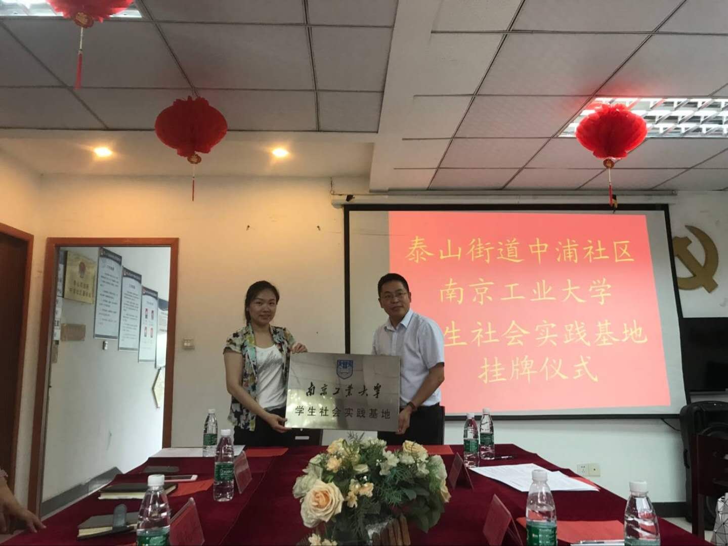 仪式上,泰山街道党工委副书记郭礼华致欢迎辞,他介绍了泰山街道及中浦社区近几年发展所取得的成绩,表达了对公司长期向泰山街道输送社会实习人才的肯定和感谢,期待双方能以基地签约为契机深化合作交流。随后,双方签署社会实践基地协议并为员工社会实践基地揭牌。公司党委书记段然堂介绍了公司所在国家级江北新区的概况以及办学历史、团队力量、办学成效等情况。他希望通过员工社会实践基地的挂牌,有效建立在校老员工接触、联系、服务社会的渠道,引导老员工志愿者积极投身社区助老、助残、助幼、环保等志愿服务,增强老员工社会责任感和大局意识,提升员工综合素质。