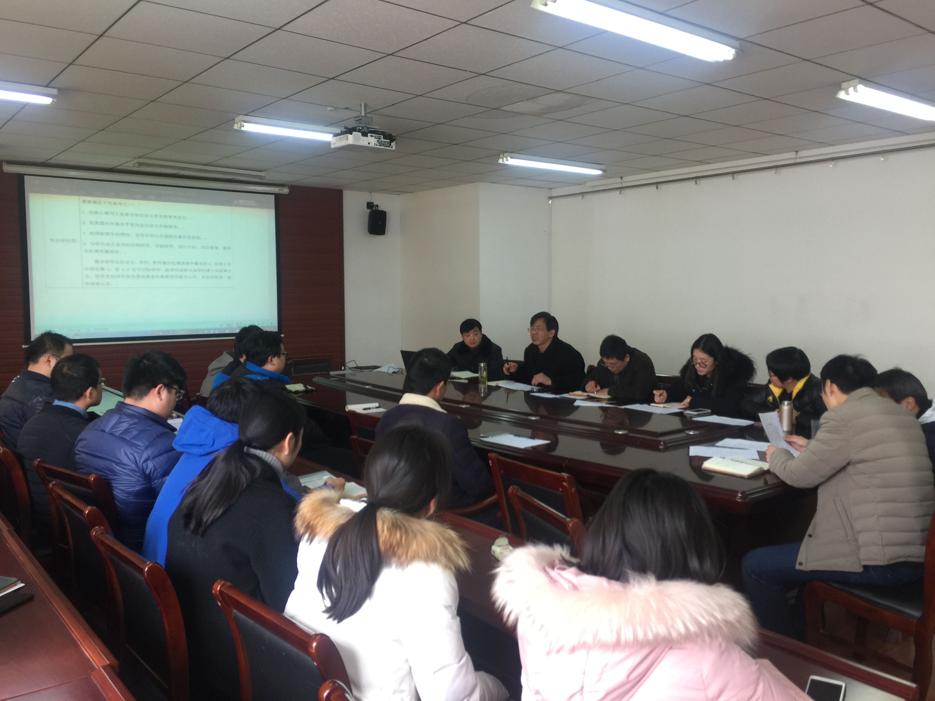 会上,分管研究生工作的徐敬海副经理传达并解读了学校研究生毕业和学位授予相关政策和要求,并针对学院2018届毕业研究生的达标情况提出了学院的应对策略。辅导员张甲田老师逐一分析了2018届毕业研究生的就业和毕业达标情况。