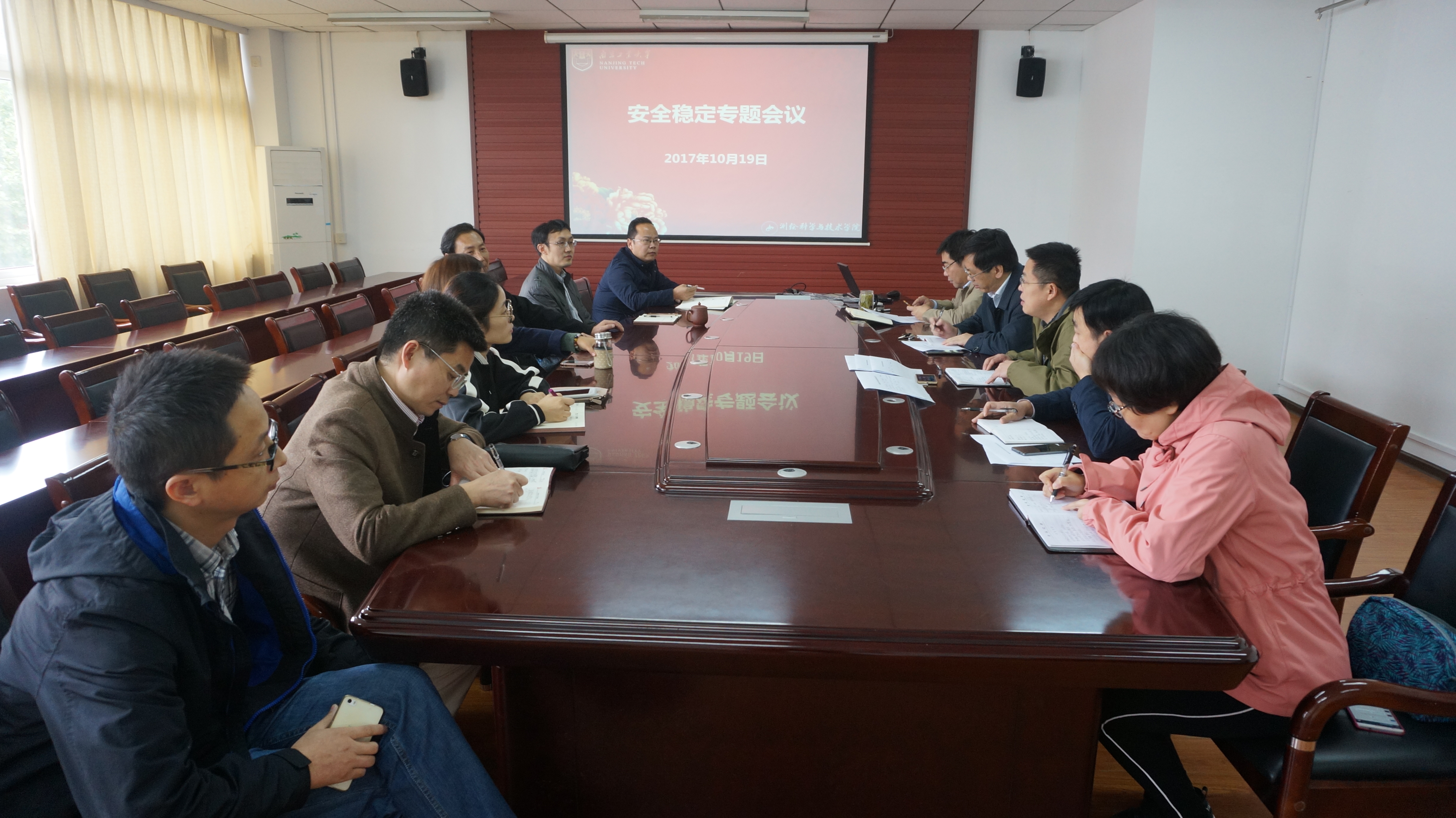 10月19日下午,学院在院会议室召开安全稳定专题会议。学院领导班子成员、学院中层干部(科级)、教工党支部书记、系主任、实验中心主任、辅导员等参加会议。公司党委书记段然堂主持会议。