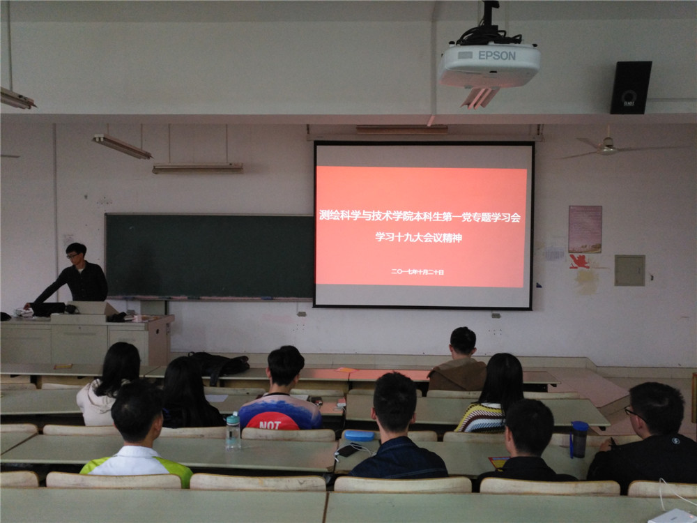 10月20日下午3:40,学院第一党支部于同和409教室召开学习十九大精神专题会议,本科生第一党支部全体成员参加本次会议,会议由党支部书记李博主持。
