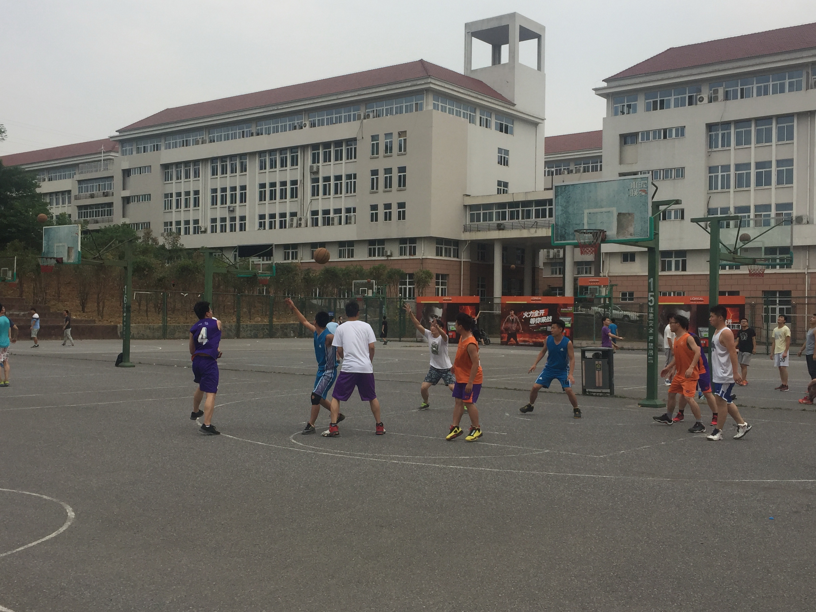 微风送爽,榴花飘香,转眼间又迎来了毕业季。为欢送即将离开校园、踏上人生新征程的2014级毕业研究生,6月4日下午四点,学院研究生会在江浦校区东苑篮球场举办了欢送毕业研究生篮球赛。由王波、李文凯、蔡靖宇、孙灏、司鹏伟、刘为民、王志、詹亮亮等同学组成的研三师兄队,与王天、王申俊、鲁民颉、张过、陈兵等同学组成的师弟队展开了一场精彩激烈的篮球较量。