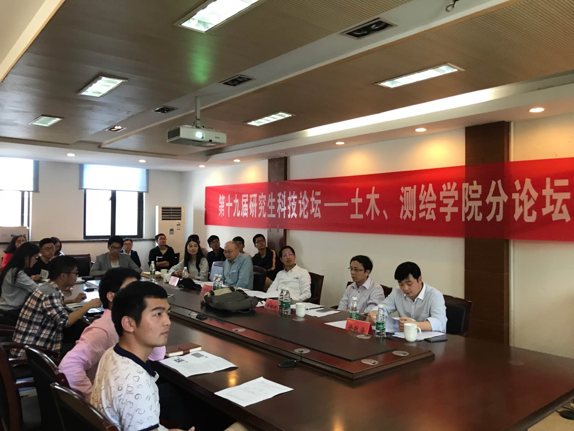 5月12日下午3:00点,suncitygroup太阳集团第十九届研究生科技论坛土木、测绘分论坛在江浦校区土木工程学院抗震研究中心会议室如期举行。土木工程公司党委书记胡夏闽教授、副经理王曙光教授、彭洋老师及suncitygroup太阳集团副经理徐敬海副教授应邀担任评委。此外,土木交通学部辅导员赵凤佳老师也出席了会议,会议由土木工程学院研究生梅雨辰主持。
