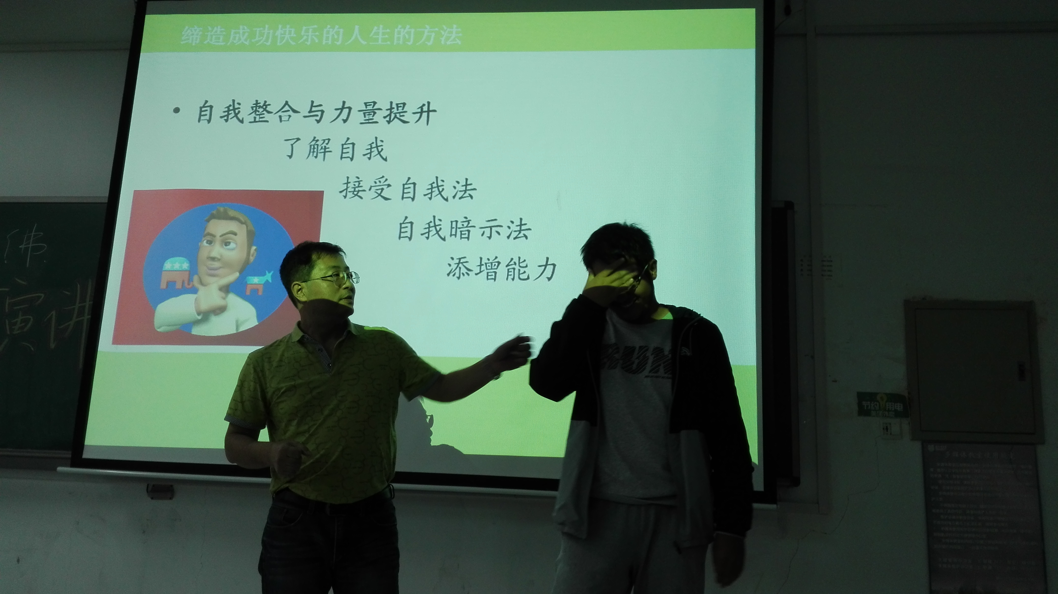 蒋老师从“我的人生经历”、“老员工与心理健康”两个方面,向广大同学介绍了他的生平,让在座同学感同身受,并着重参与互动环节,以此引发同学们的深思,对人生的追求及短暂的压抑有了明确的理解。