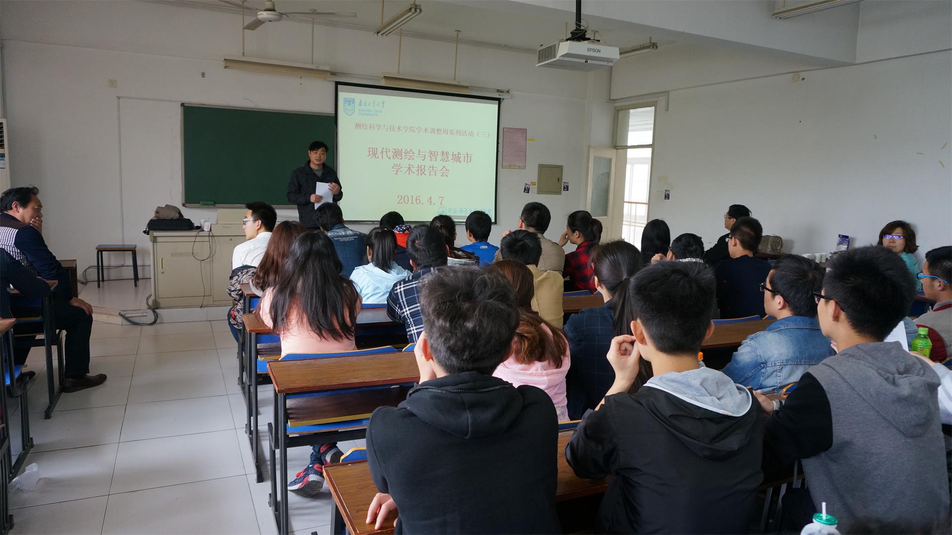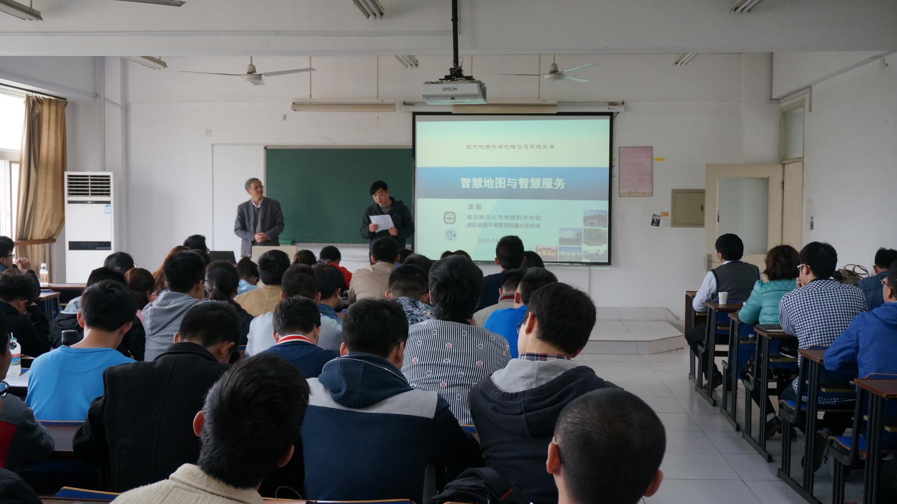 4月7日下午2:00,在江浦校区仁智楼326教室,河海大学地球科学与工程学院岳建平教授和南京师范大学龙毅教授应学院的邀请,为学院师生做了“现代测绘与智慧城市”、“智慧地图与智慧服务”的学术报告。李明峰经理、教师代表、全体在校研究生和部分本科生参加了报告会,报告会由徐敬海副经理主持。
