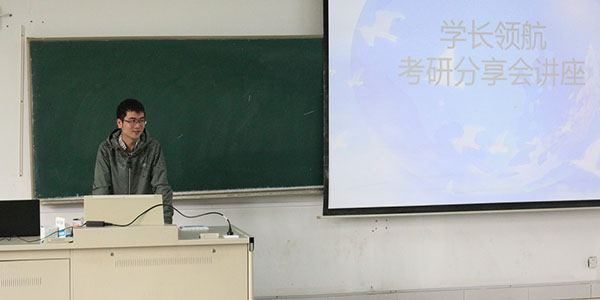 4月5日下午2:00,在江浦校区仁智楼502教室,公司举行了“学长领航”系列活动---考研经验分享会,2012级考研成功的同学与全院员工分享了他们的考研心得、体会与经验,讲座由2015级的解恩同学主持。