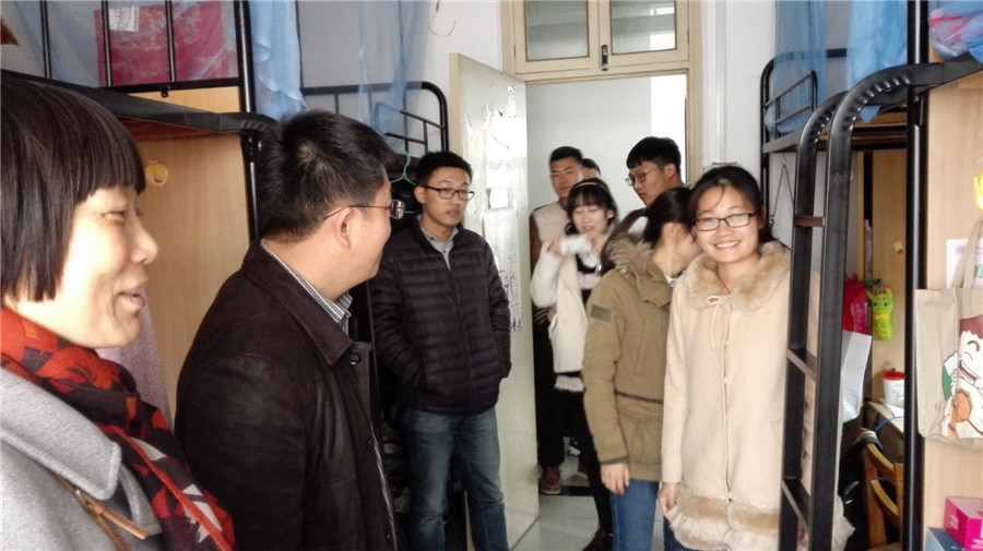 走入宿舍,老师们详细询问了同学们日常用电使用情况,尤其对是否存在大功率电器等行为进行了细致排查。检查中发现,部分同学离开宿舍未做到勤断电,存在安全隐患。老师们进行了认真教育,说明规范使用电器和提高消防安全防范意识的重要性,强调要树立“安全工作无小事”和“安全责任重于泰山”的意识,并要求及时认真整改,将安全隐患消灭在萌芽之中。在宿舍卫生方面,大部份宿舍床铺物品及其他生活用品摆放比较整齐,地面整洁,部分女生宿舍布置精致温馨。但也有部分宿舍的卫生,尤其是公共区域的卫生比较脏乱。段书记要求同学们自觉保持良好的习惯,保证宿舍的日常安全卫生。同时善于与其他学院同学沟通协调,共同维持好公共区域的卫生状况。
