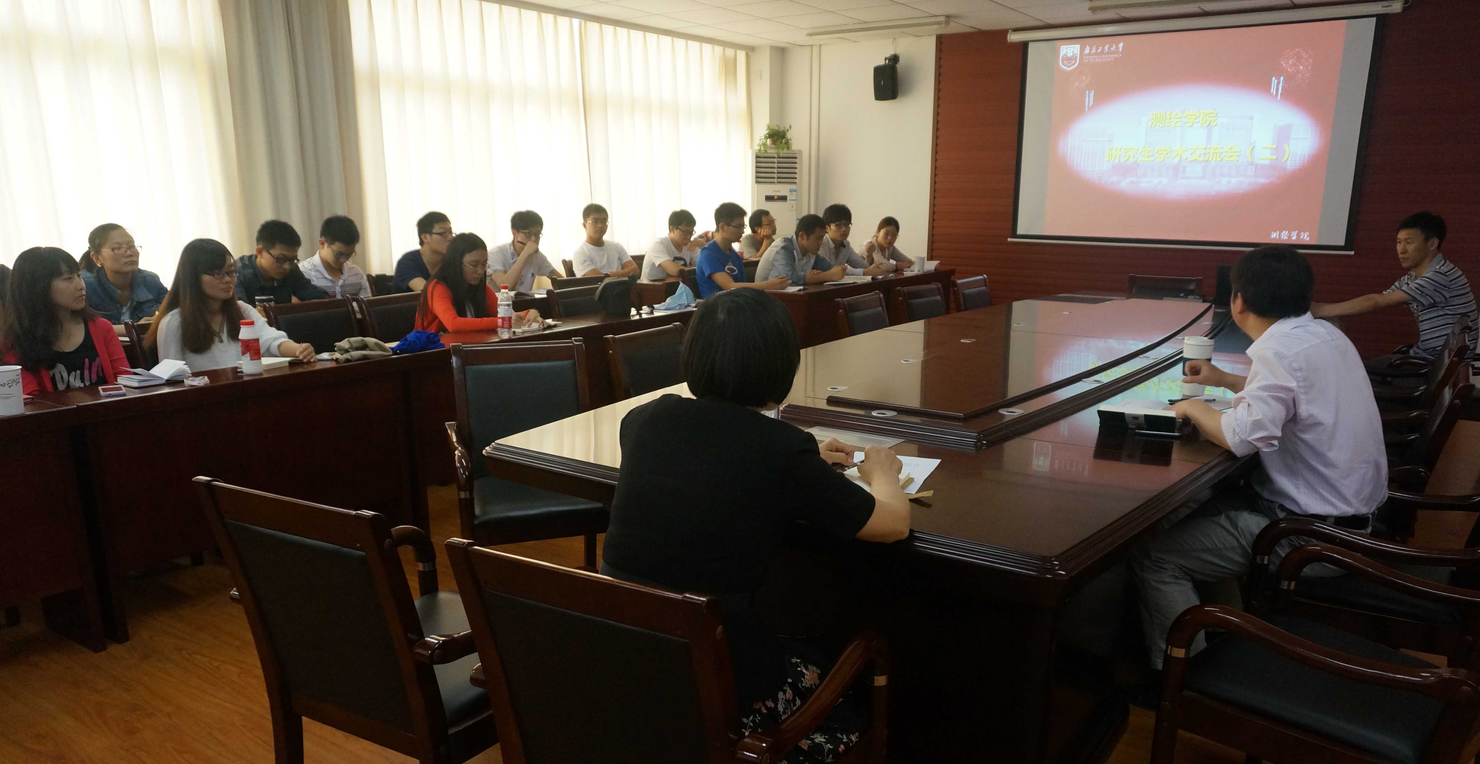 随后,苏小文、徐燕、朱丹和欧江霞4位研究生同学分别就《上海某地铁盾构工程测量技术探讨》、《基坑监测数据管理系统研究与实现》、《基于空间自相关的DEM研究》、《基于改进小波阈值去噪法的变形预测研究》汇报了自己实践创新和学术研究的成果。