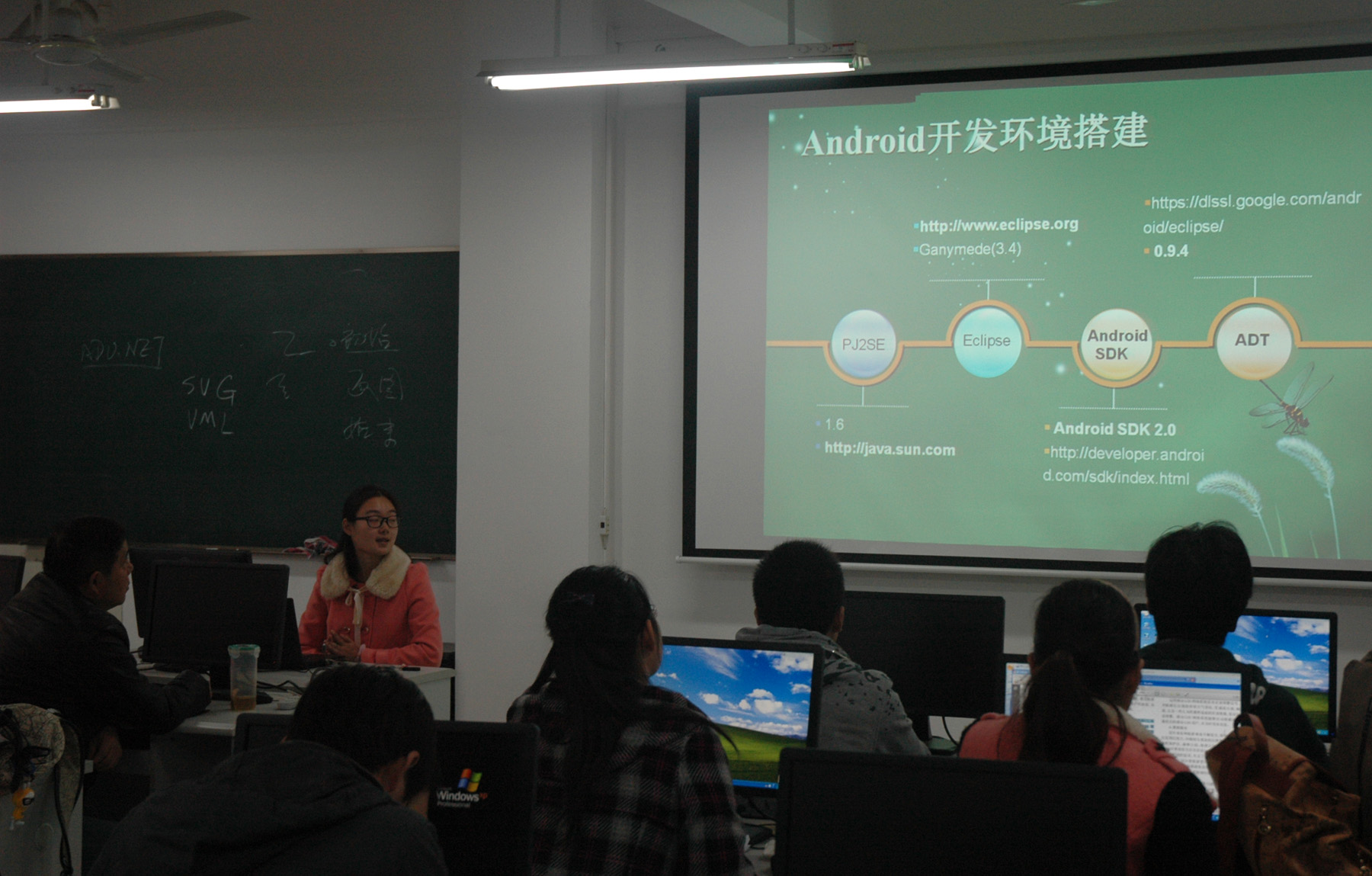 课堂上,罗震霄同学以无锡市水利要素移动式管理平台开发为例,从开发前准备、功能设计和技术细节等方面对Andriod项目开发流程进行了详细介绍;杨茜同学从手机地图软件现状、常用手机地图软件特点等方面对Andriod地图软件进行了对比分析;郑胜利同学从手机地图开发和地图服务等方面对ArcGIS for Andriod 应用程序开发进行了汇报;杨慧颖同学从系统架构、开发环境搭建以及相应的应用实例对Andriod应用开发进行了详细展示。邵老师对每位同学的讲解进行了精彩点评,并对存在的问题进行了细致解答。其他同学也纷纷提出问题,师生互动交流,课堂气氛热烈。