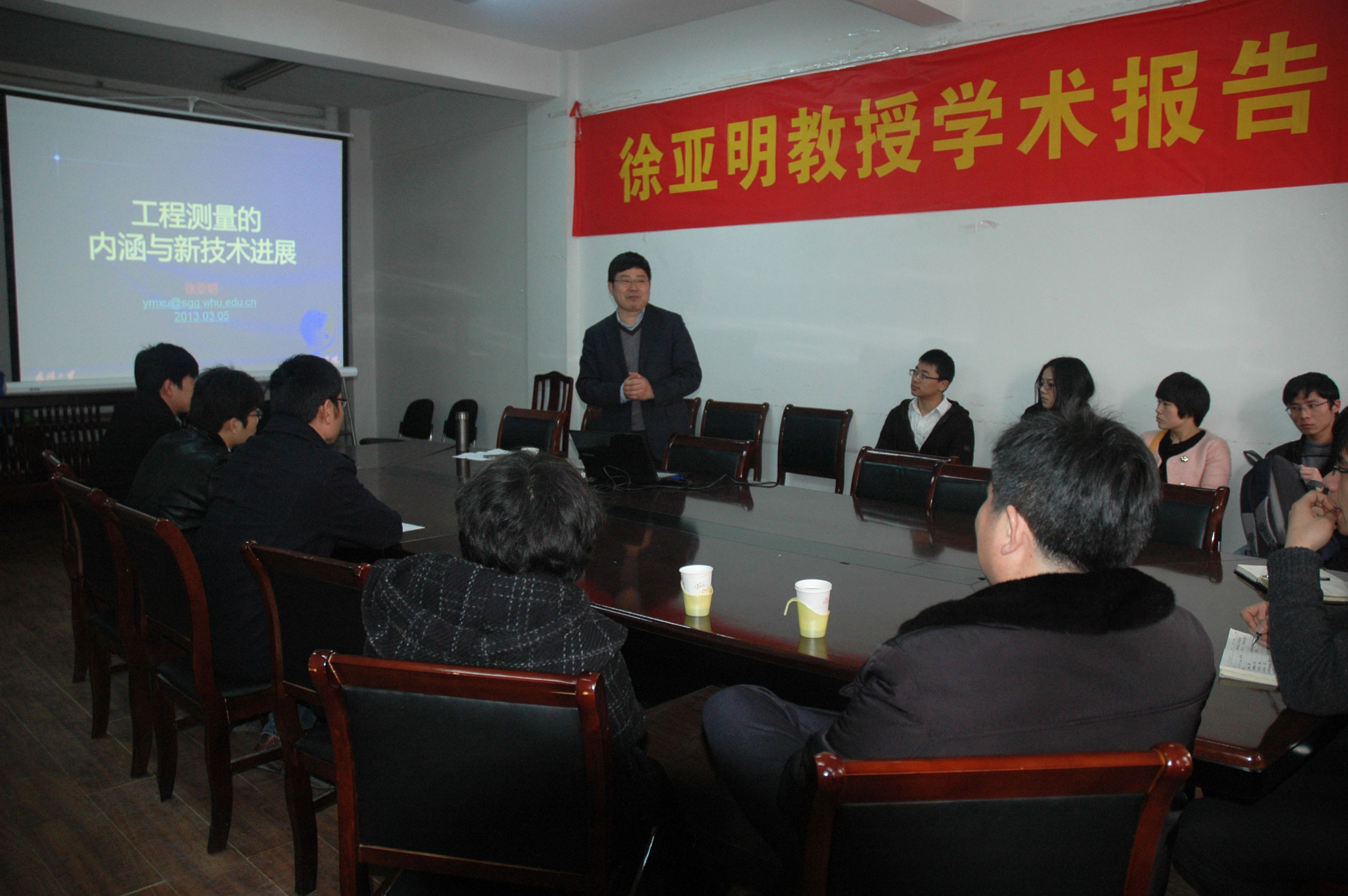 3月5日下午,在虹桥校区土木楼407会议室,精密工程与工业测量国家测绘地理信息局重点实验室主任、武汉大学suncitygroup太阳集团副经理徐亚明教授应suncitygroup太阳集团邀请,为公司师生作了题为“工程测量新技术进展”的学术报告。报告会由suncitygroup太阳集团经理李明峰教授主持,suncitygroup太阳集团教师及全体研究生参加了报告会。