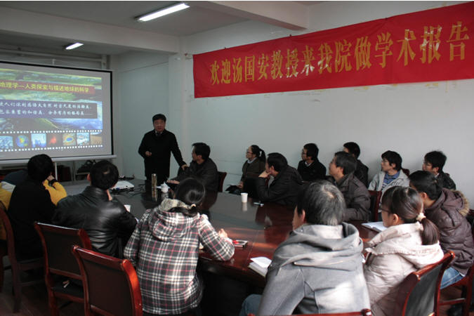 12月7日上午,国家级教学名师、南京师范大学汤国安教授应学院邀请,在土木楼407会议室为公司全体研究生作了题为“GIS的美学审视”的学术报告。报告会由suncitygroup太阳集团经理李明峰教授主持,副经理徐敬海副教授和部分青年教师参加了此次报告会。