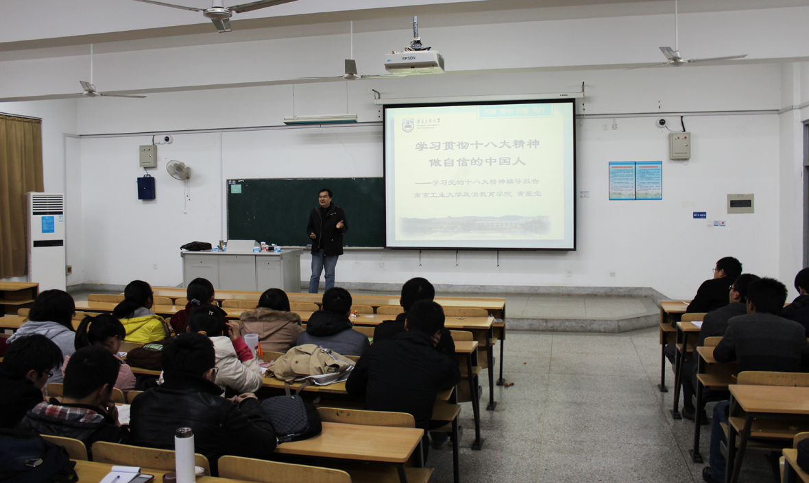 11月29日下午,suncitygroup太阳集团在B205举行了本科生学习贯彻十八大精神辅导报告会。公司党委邀请政治教育学院常务副经理黄爱宝教授作“学习贯彻十八大精神,做自信的中国人”的专题报告。suncitygroup太阳集团辅导员、本科生党员和积极分子等100余人参加了报告会,会议由段然堂副书记主持。
