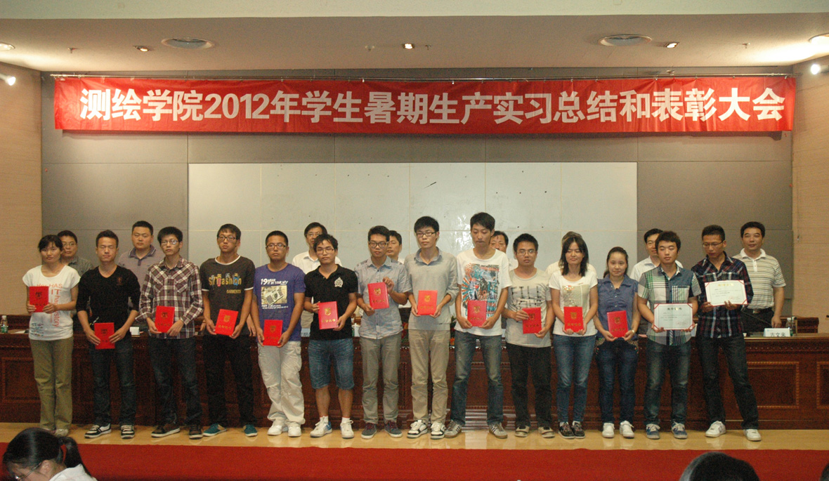 9月28日下午,suncitygroup太阳集团在江浦校区图书馆一楼报告厅隆重举行2012年暑期员工生产实习总结与表彰大会。学校教务处处长管国锋教授,盐城市勘察测绘院、泰州市测绘院、南京市测绘勘察研究院有限公司、江苏省地质勘查技术院测绘院、南京房安建筑技术公司、常州市建筑科学研究院股份有限公司等六家企事业单位的领导,公司领导班子成员,教师代表及09级、10级和11级的全体员工参加了大会。会议由公司党委副书记段然堂主持。会后,孙伟民副董事长亲切会见了参加会议的学院校外实习基地单位的领导。