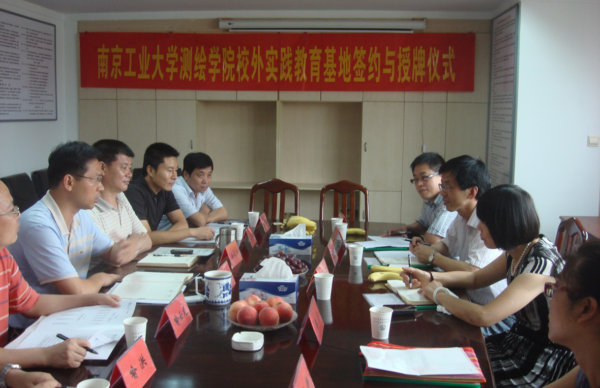 为进一步加强实践教育,探索应用型创新人才培养新模式,切实提高人才培养质量。7月中下旬,学院全体领导班子、两办人员分别赴南京、泰州、盐城等地,与南京市房屋安全鉴定处签定了校外实践教育基地协议、与泰州市测绘院和盐城勘察测绘院进行了校外实践教育基地授牌仪式,江苏省测绘局成果处陈洪良处长莅临指导并讲话。